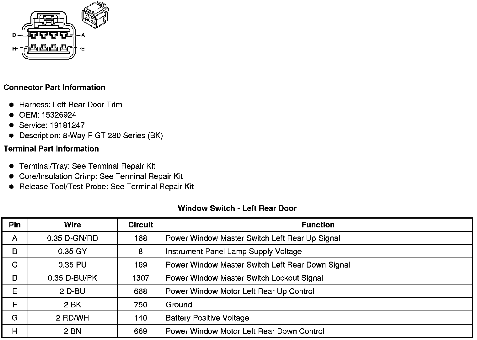 Window Switch - Left Rear Door
