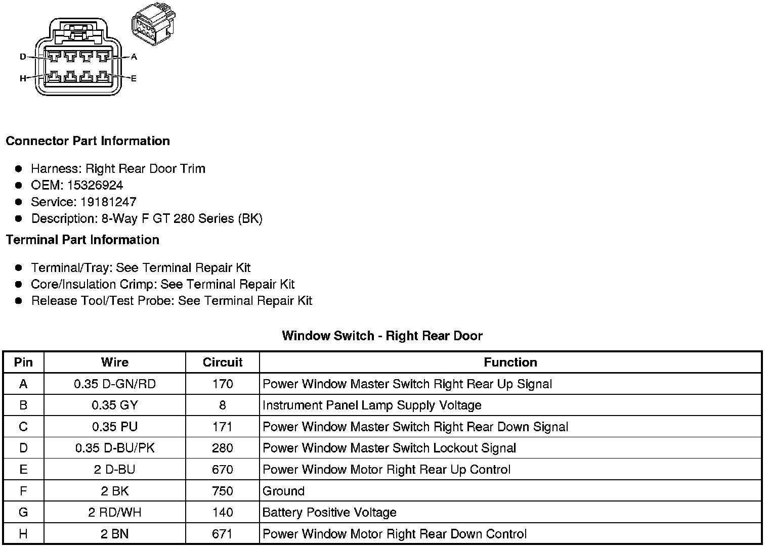Window Switch - Right Rear Door
