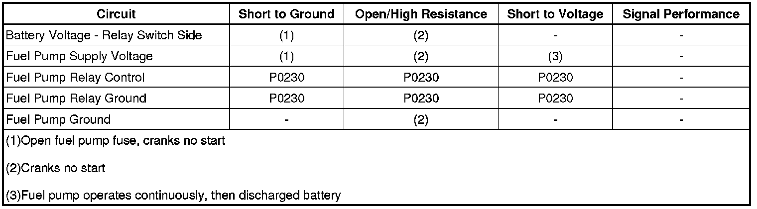 • If the fuel pump fuse is open, test for a short to ground in the supply voltage circuit of the fuel pump, or a faulty fuel pump.