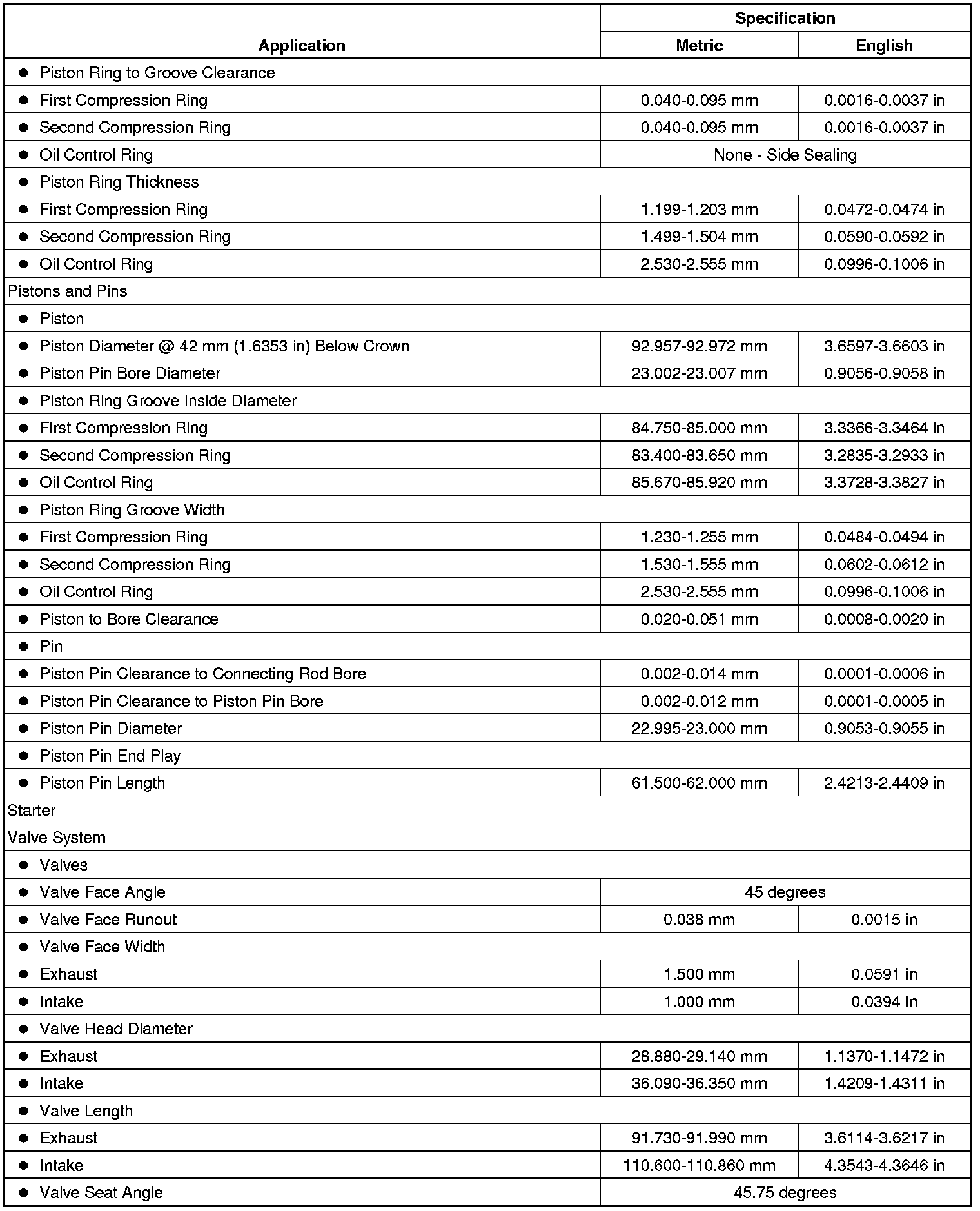 Engine Mechanical Specifications (L37) (4.6L)