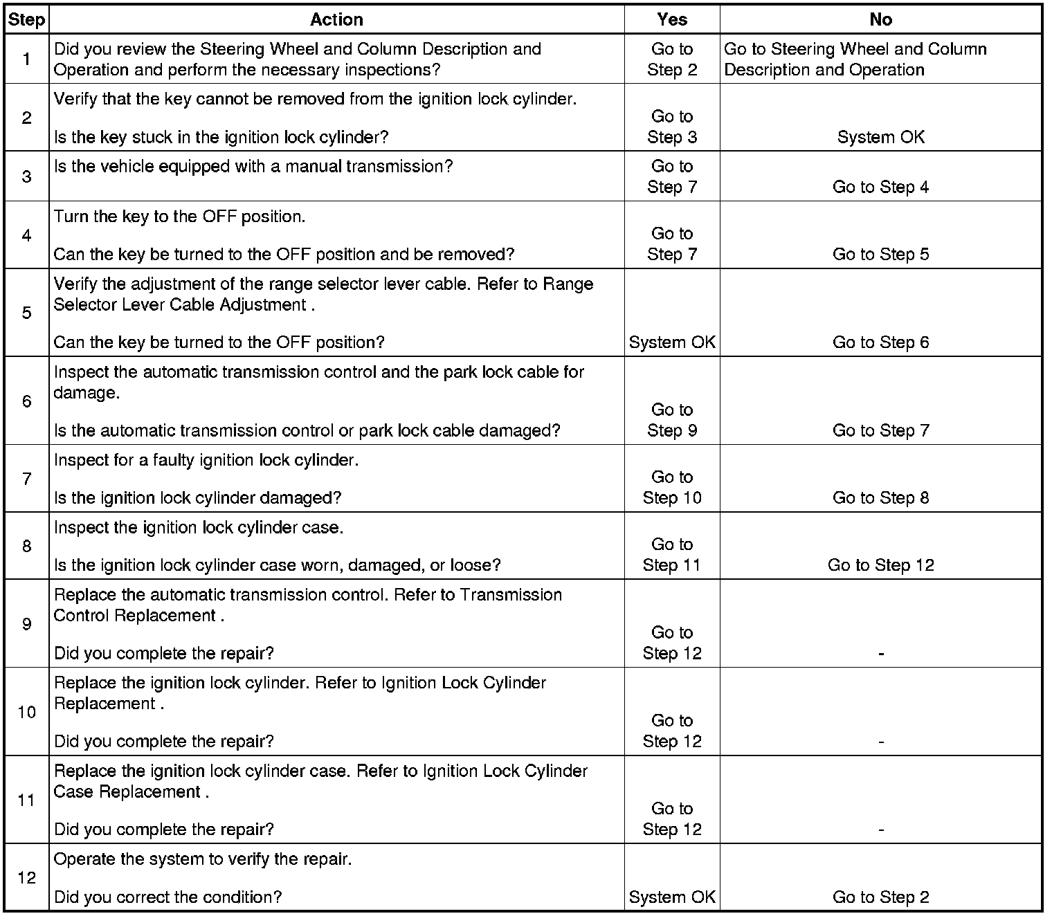 Ignition Key Cannot Be Removed From the Ignition Lock Cylinder (Column Shift)