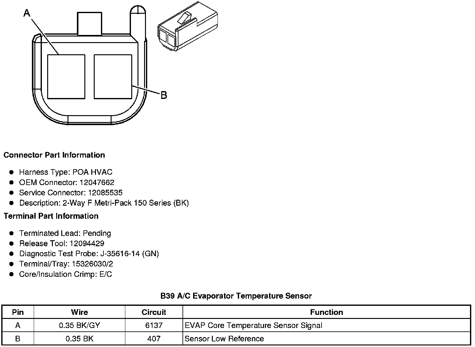 A/C Evaporator Temperature Sensor B39