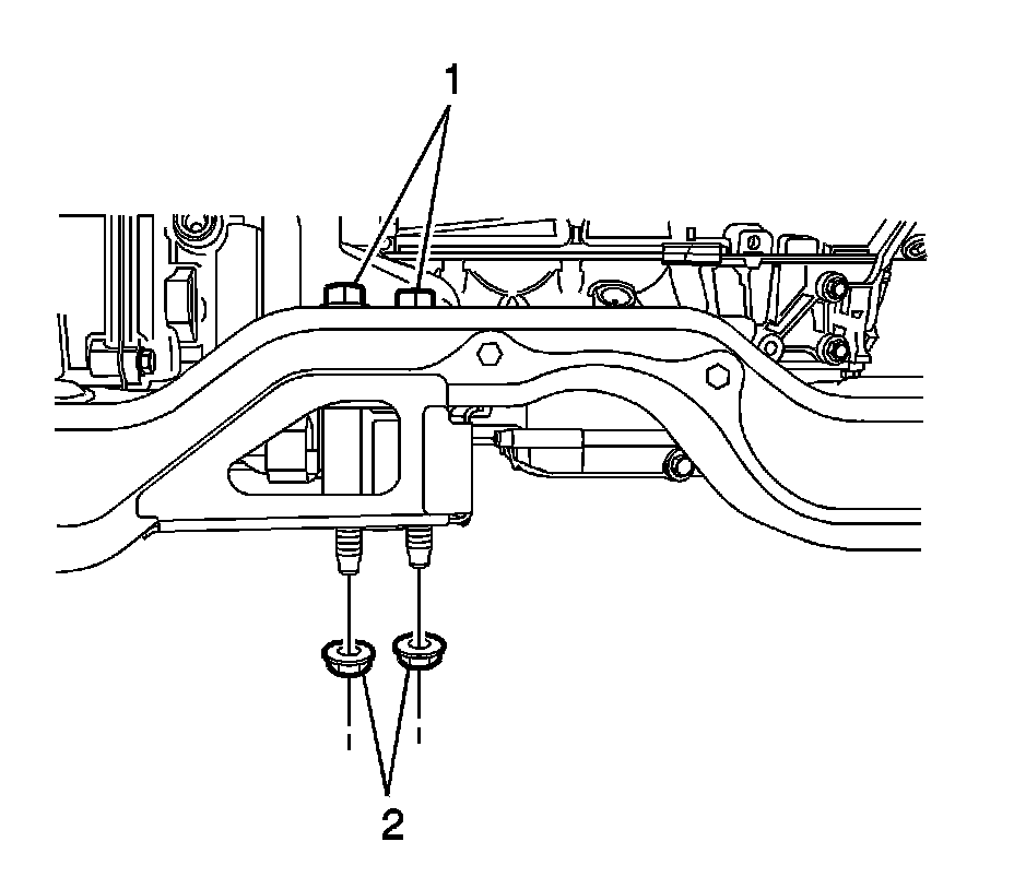 13.If equipped with FWD, remove the rear transmission mount fasteners (1, 2).