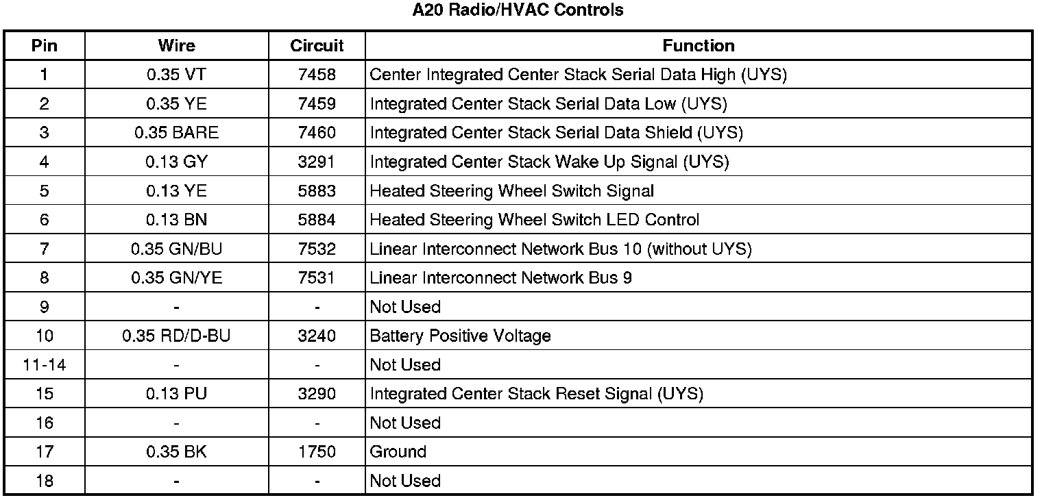 A20 Radio/HVAC Controls
