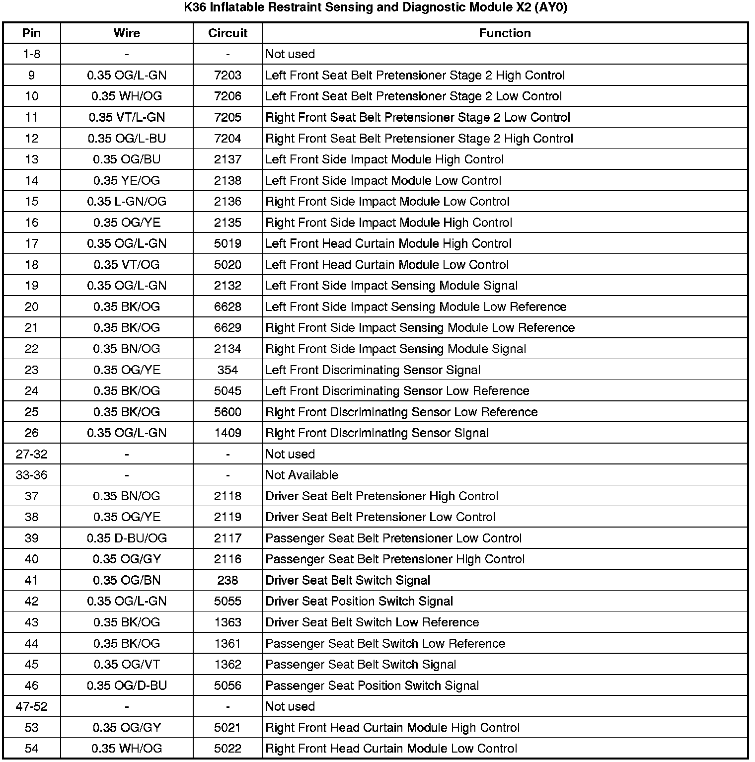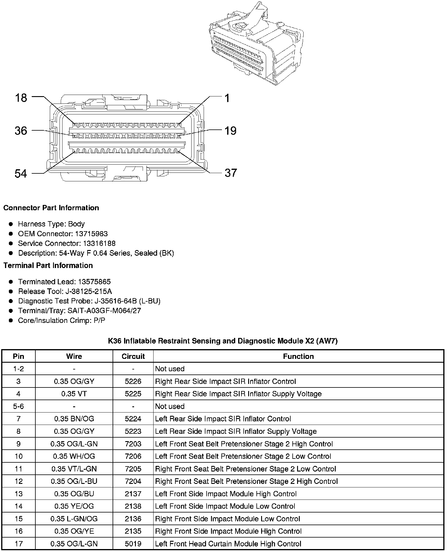 K36 Inflatable Restraint Sensing and Diagnostic Module X2 (AW7)