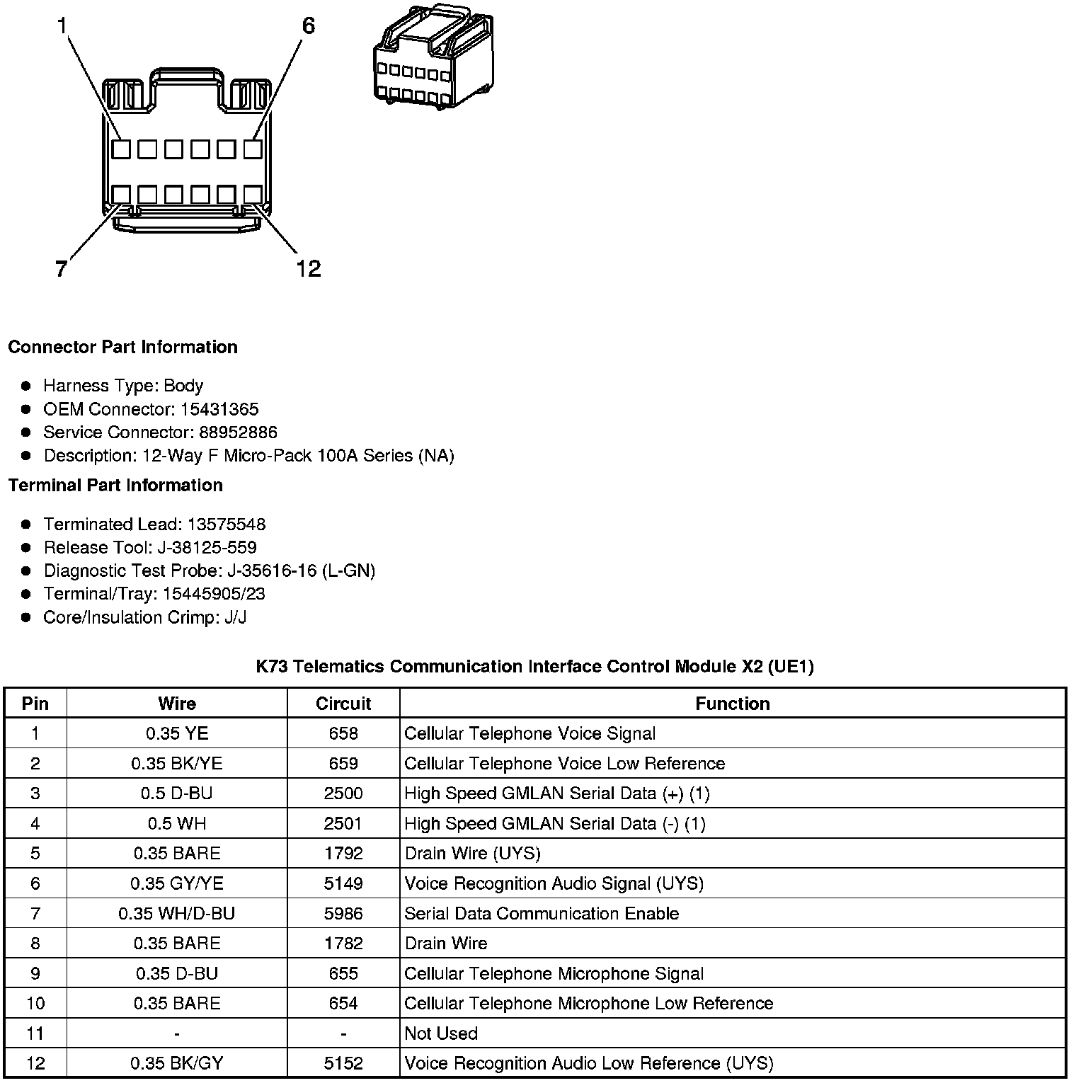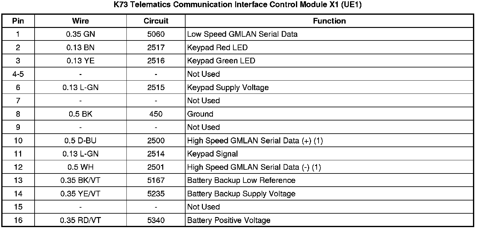 K73 Telematics Communication Interface Control Module X2 (UE1)