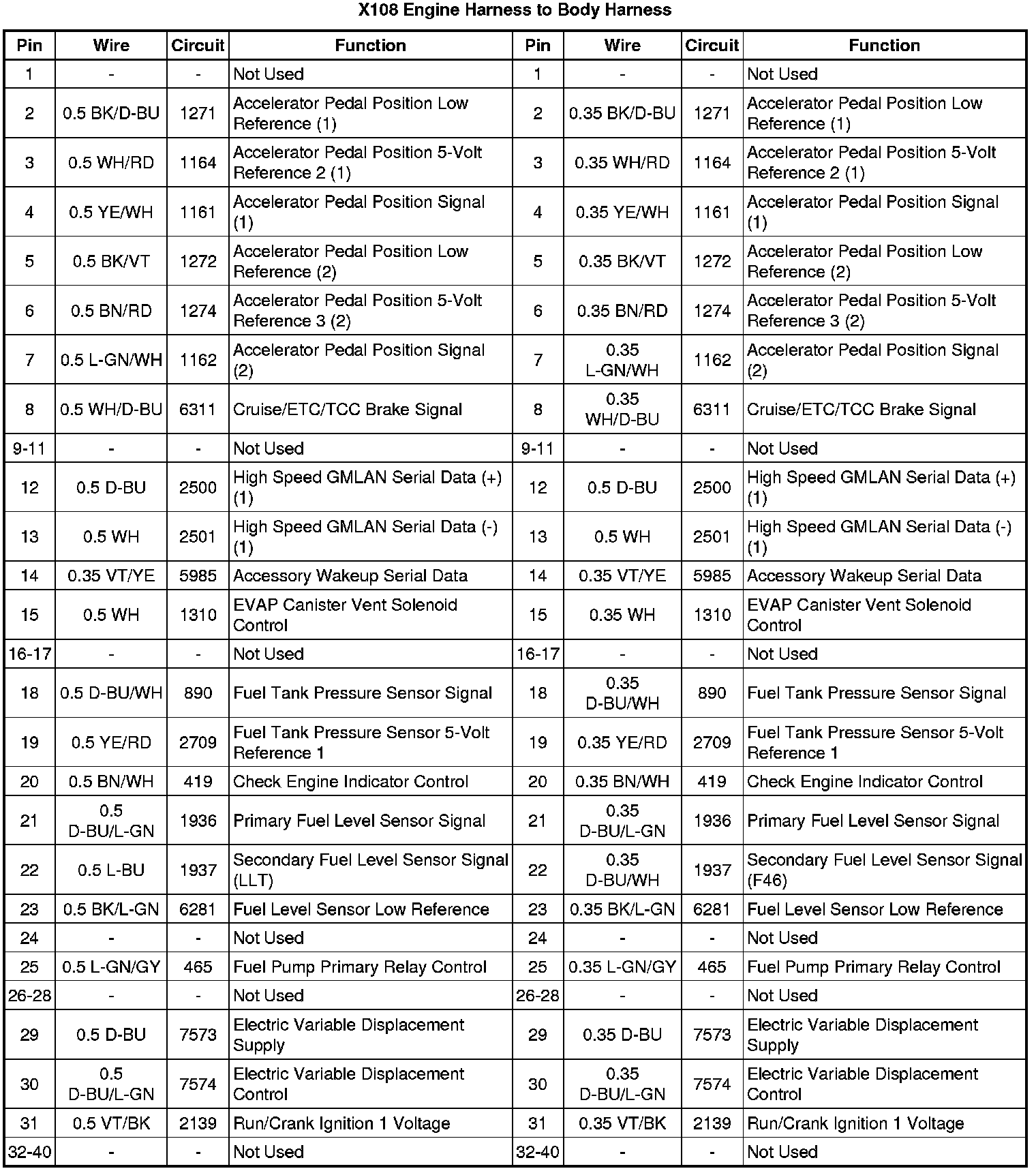 X108 Engine Harness to Body Harness