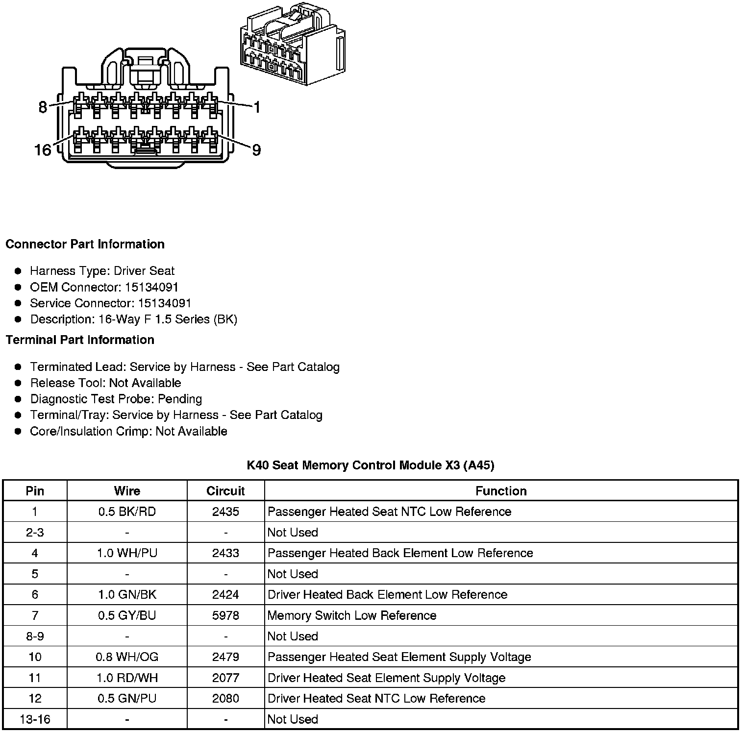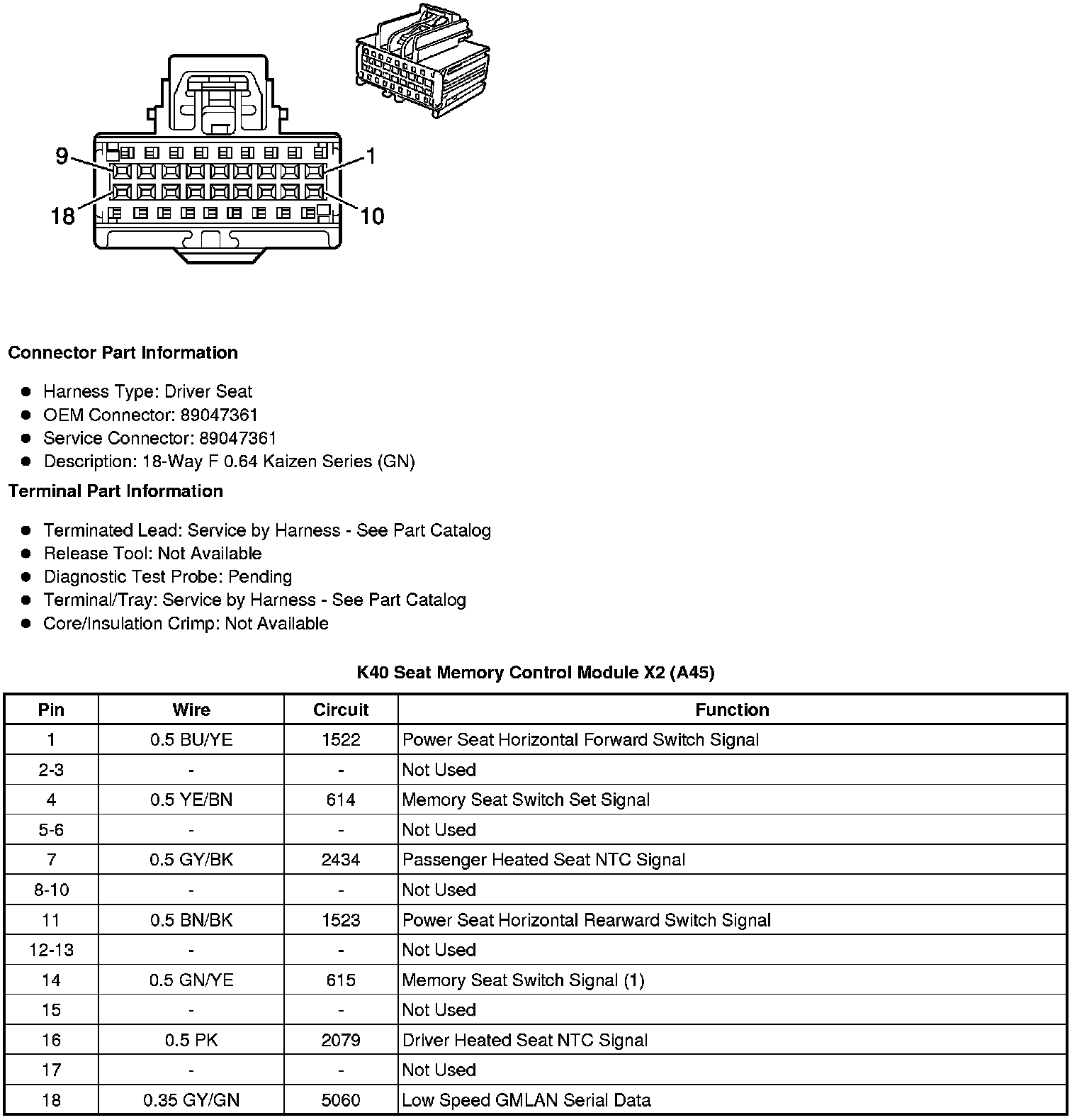 K40 Seat Memory Control Module X1 (A45)