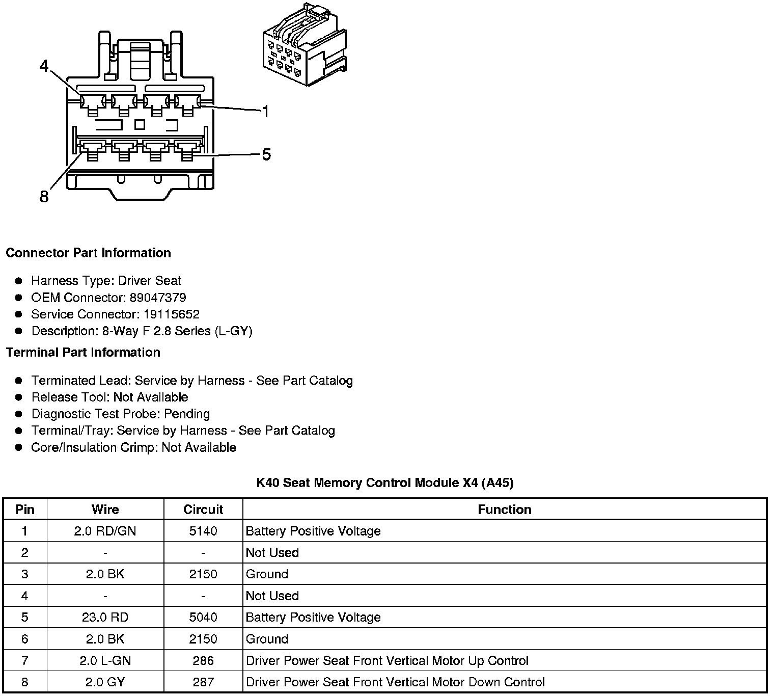 K40 Seat Memory Control Module X4 (A45)