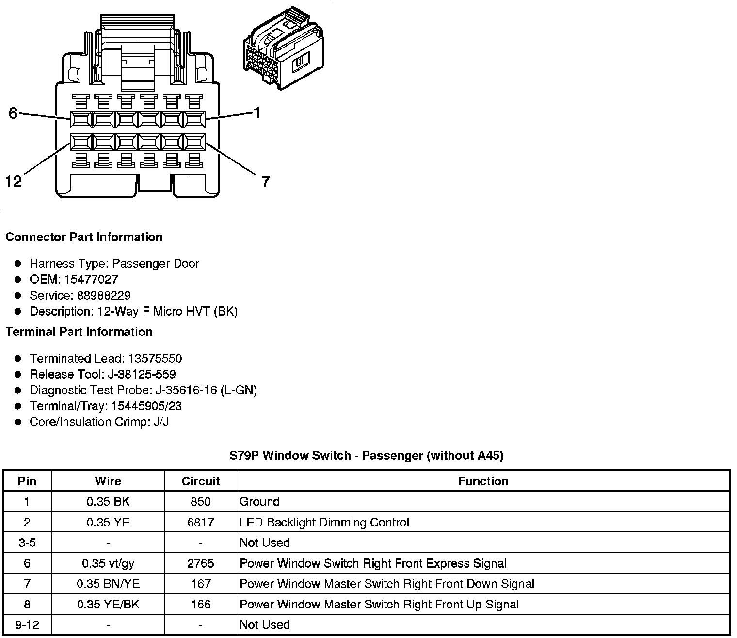 S79P Window Switch - Passenger X1 (A45)