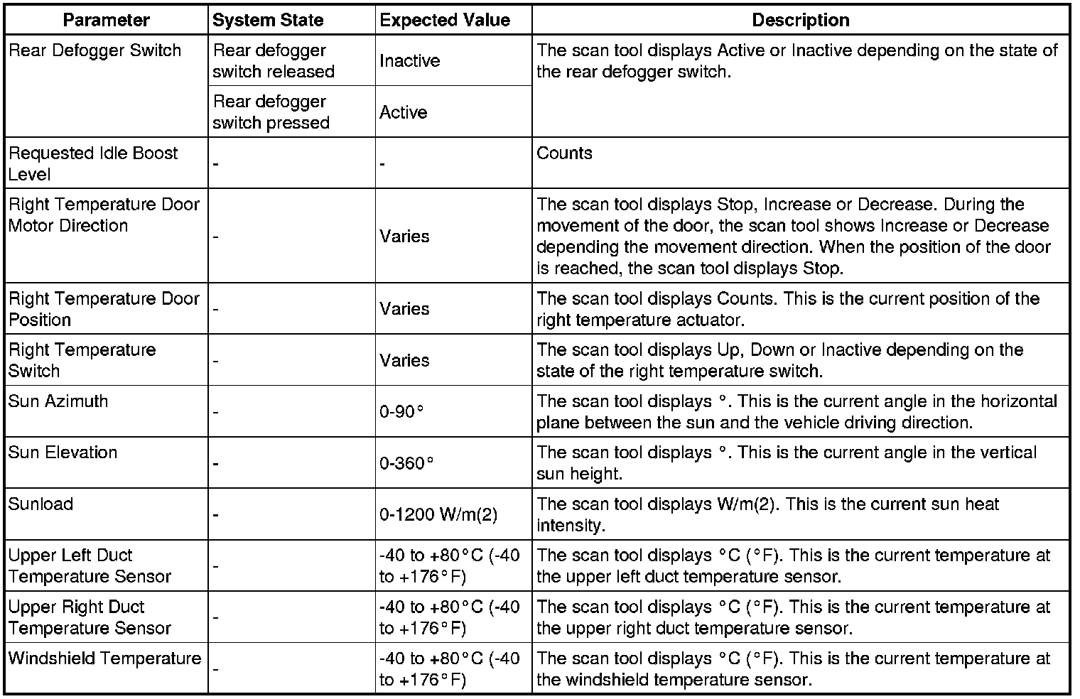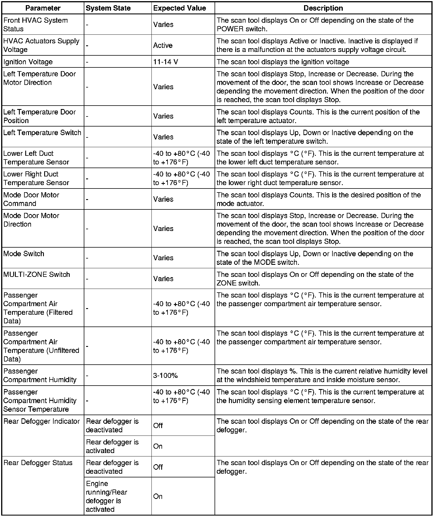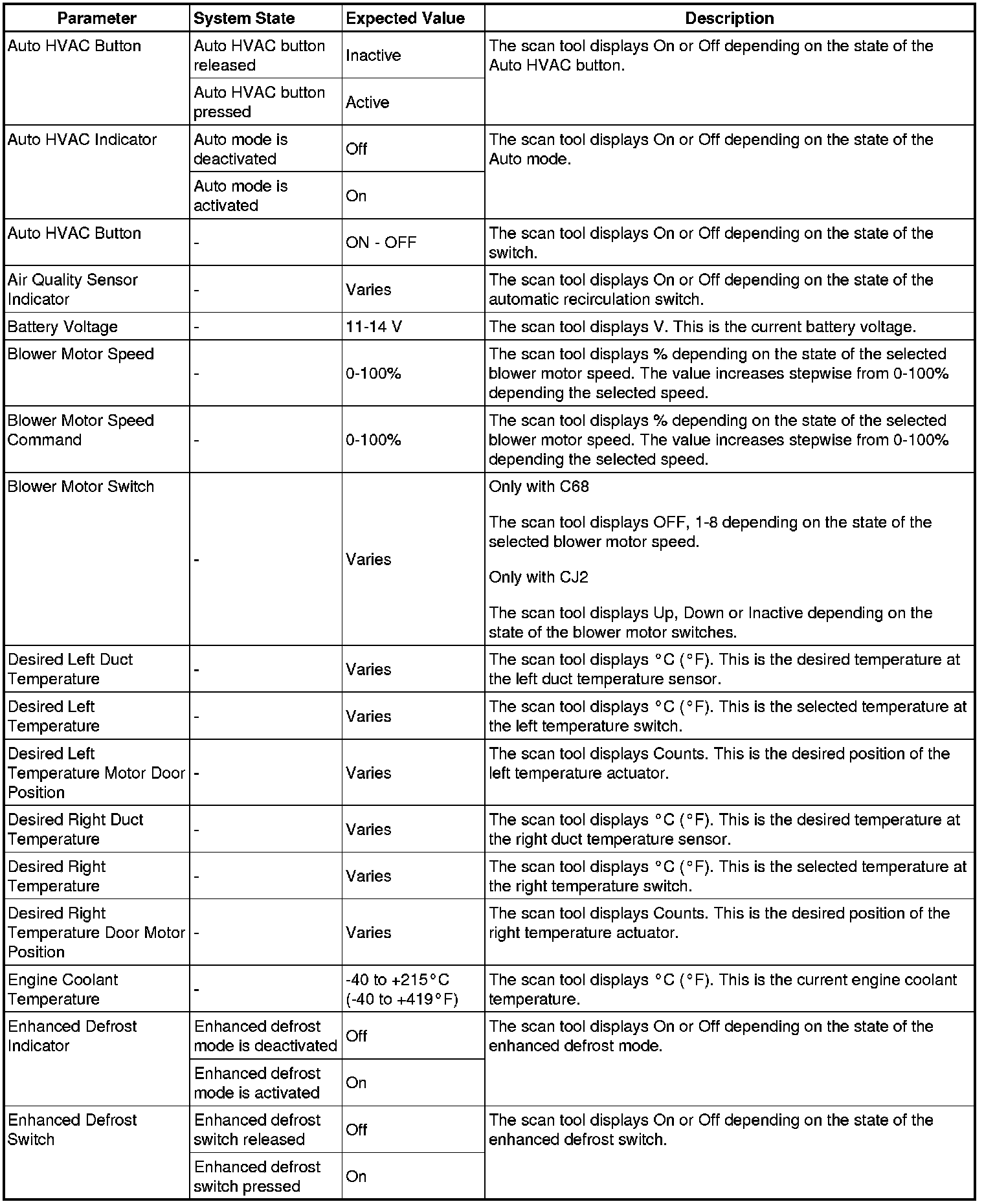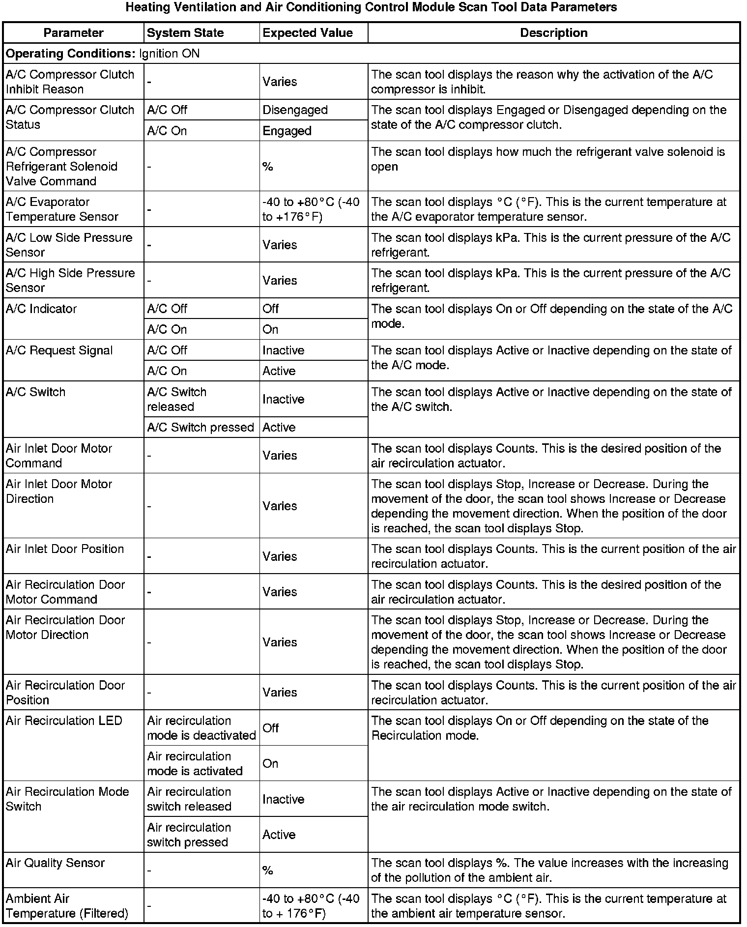Heating, Ventilation and Air Conditioning Control Module Scan Tool Information