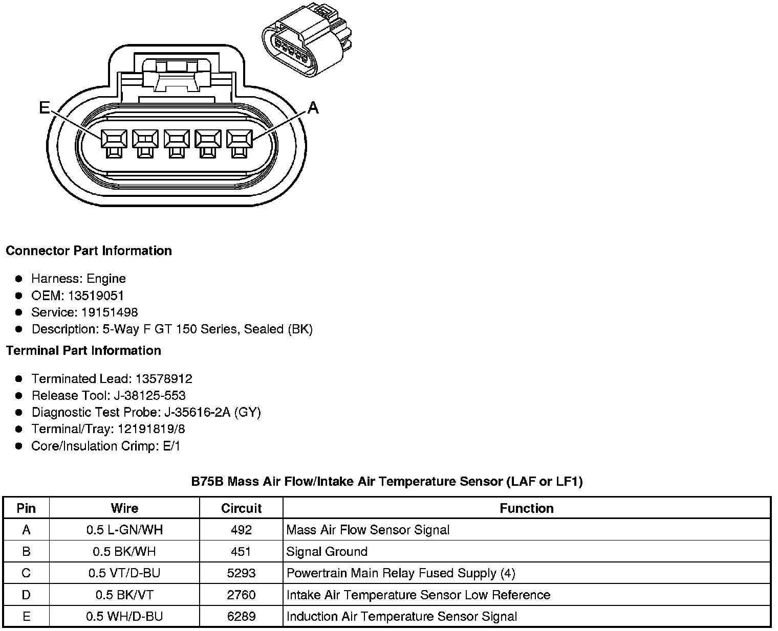 B75B Mass Air Flow/Intake Air Temperature Sensor (LLT)