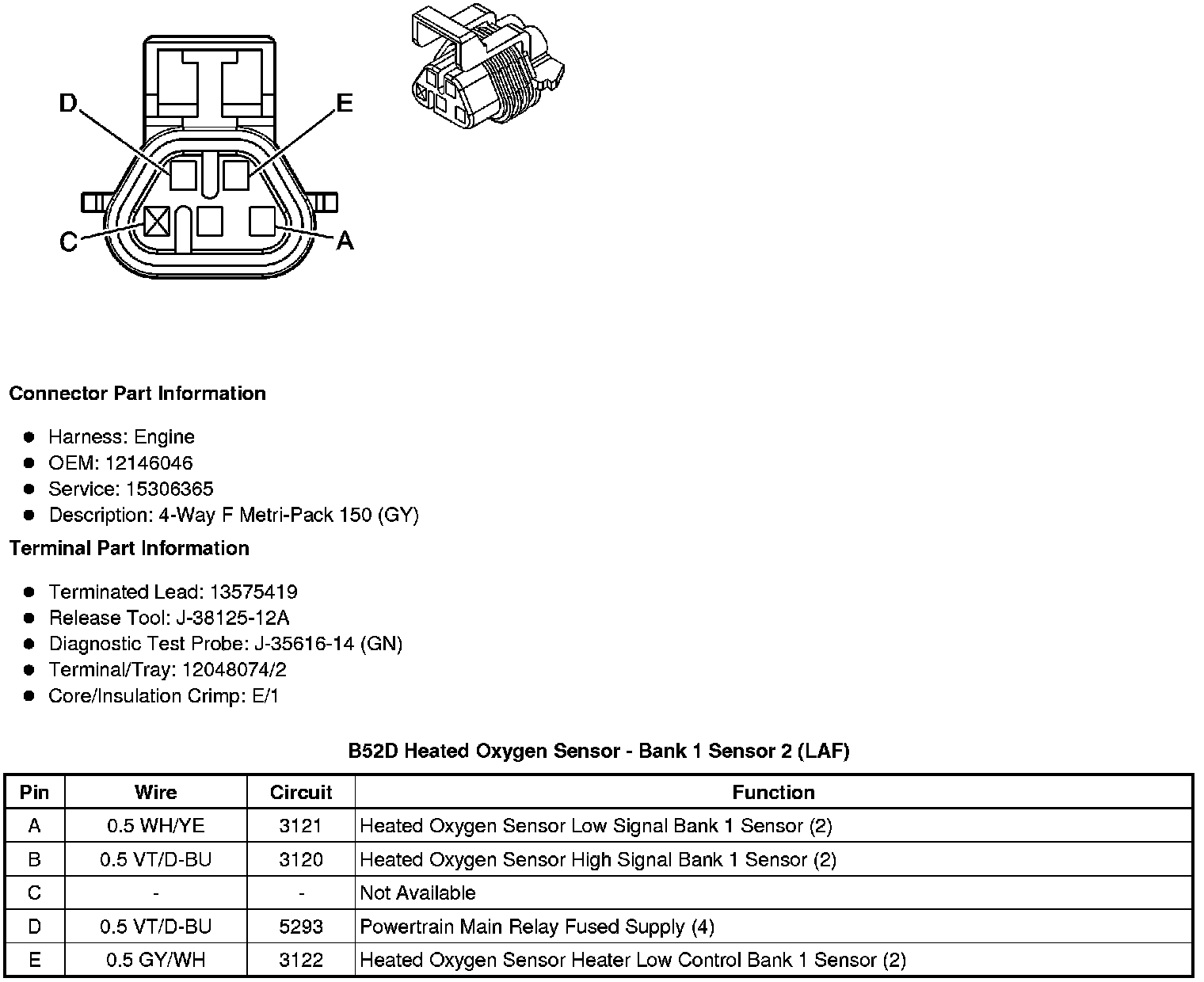 B52D Heated Oxygen Sensor - Bank 1 Sensor 2 (LF1 or LLT)