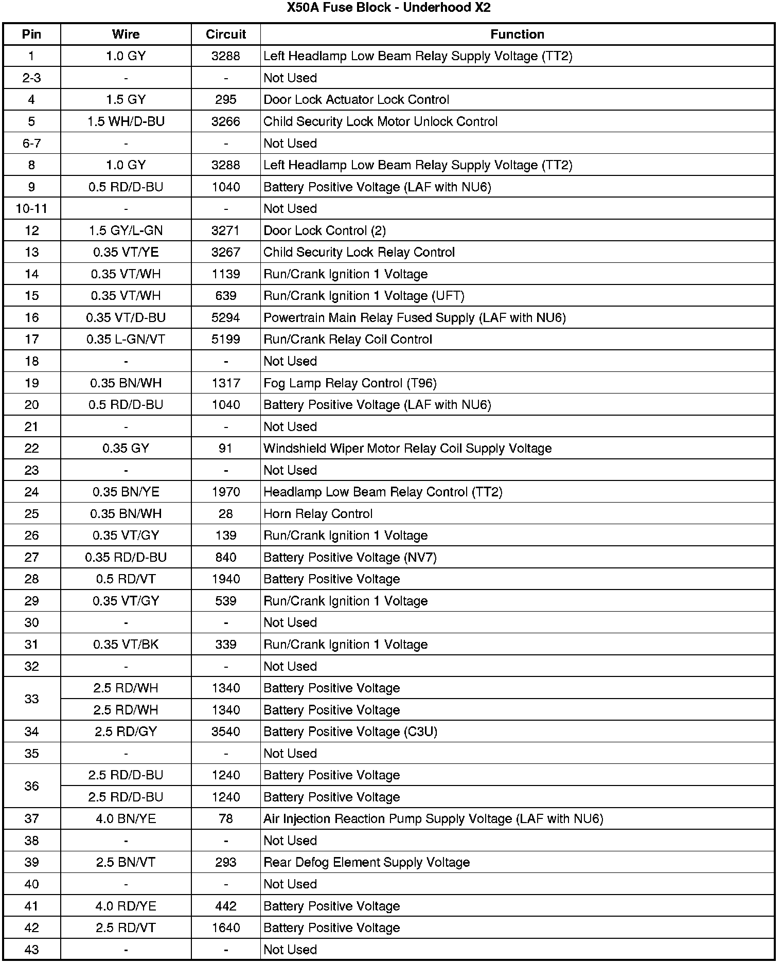 X50A Fuse Block - Underhood X2