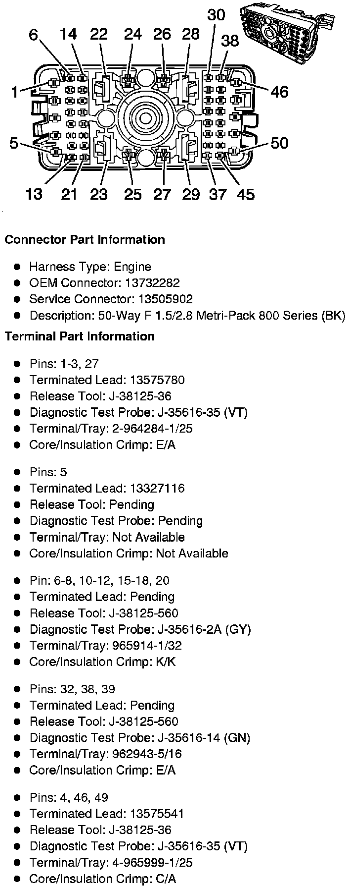 X50A Fuse Block - Underhood - Top View