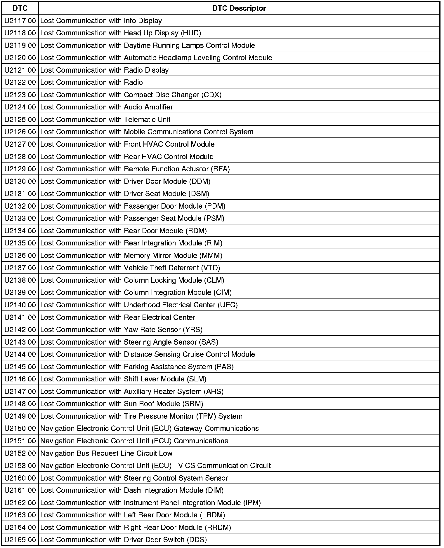 This list includes all Data Communications related U-code DTCs in alphanumeric order with descriptors for all modules. Not all DTCs listed will be applicable to all vehicles.