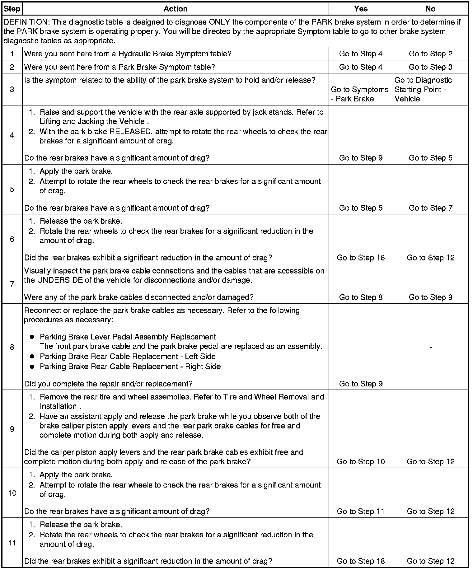 Park Brake System Diagnosis