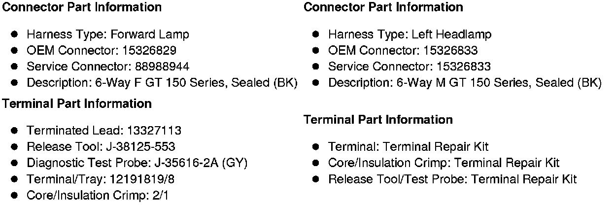 X113 Forward Lamp Harness to Left Front Head Lamp Assembly Harness