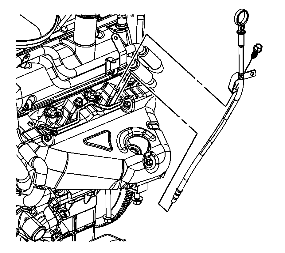 2. Install the oil level indicator tube bolt and tighten to 25 Nm (18 lb ft).