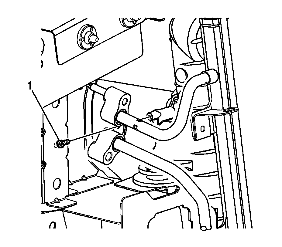 3. Install the condenser line to radiator mounting bolt (1) and tighten to 6 Nm (53 lb in).