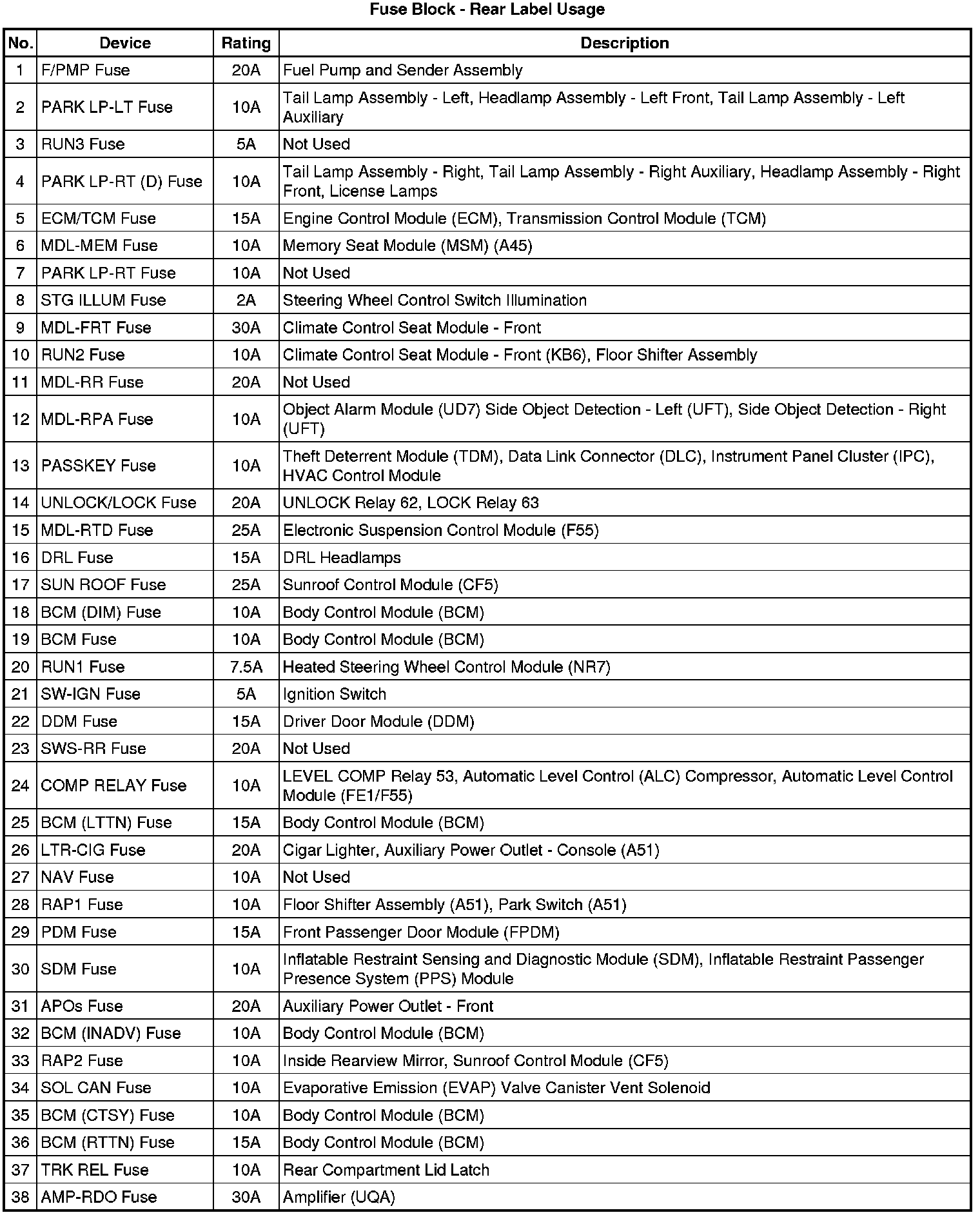 Fuse Block - Rear Label