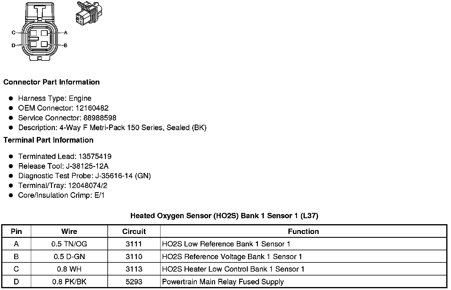 Heated Oxygen Sensor (HO2S) Bank 1 Sensor 1 (L37)