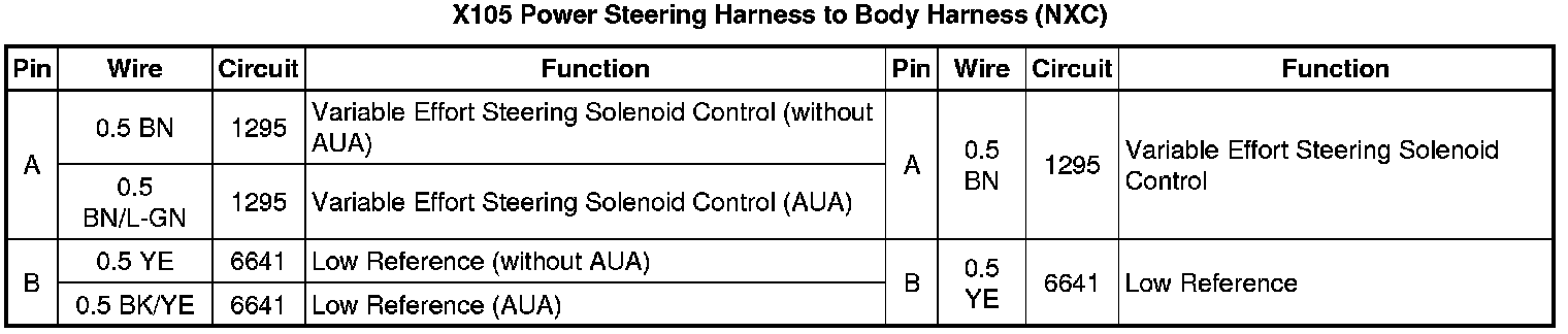 X105 Power Steering Harness to Body Harness (NXC)