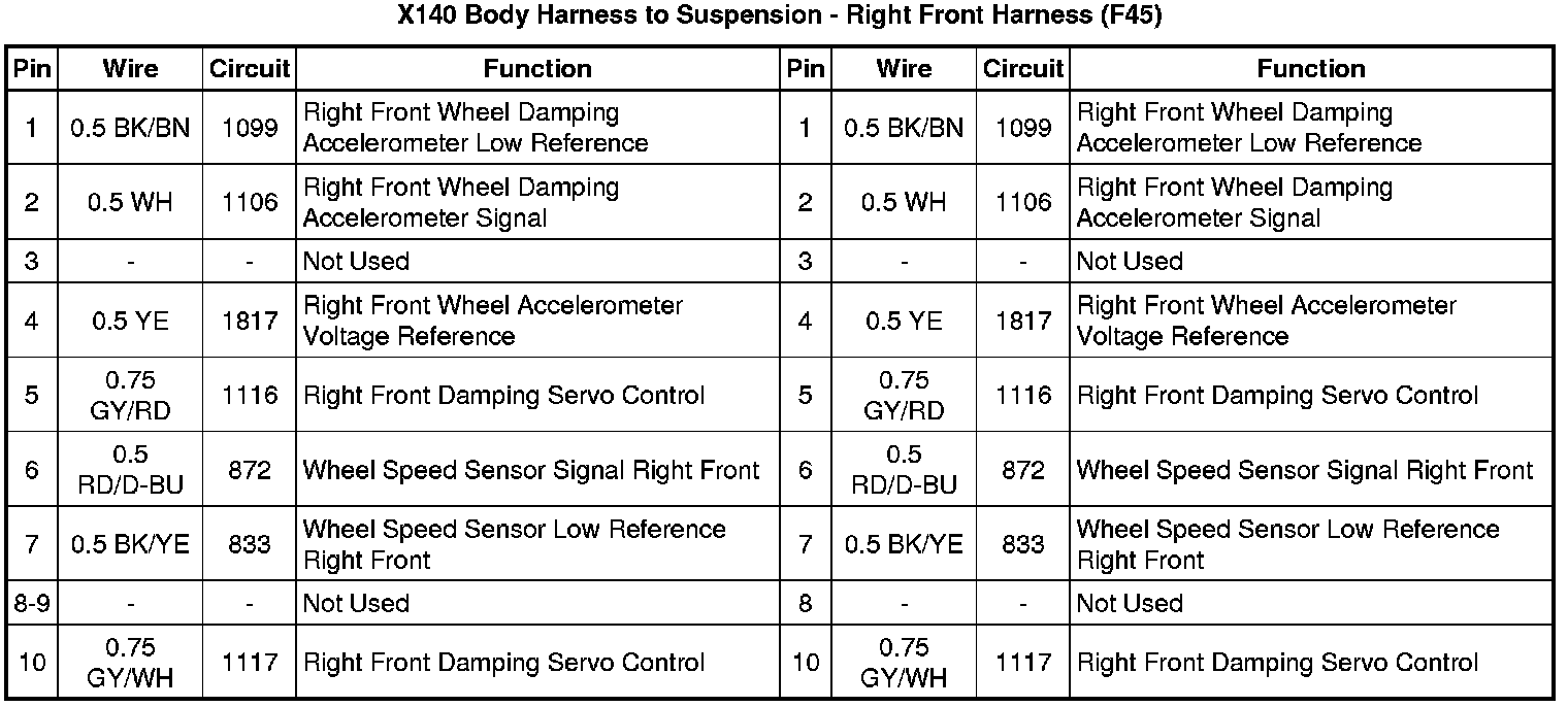 X140 Body Harness to Suspension - Right Front Harness (F45)