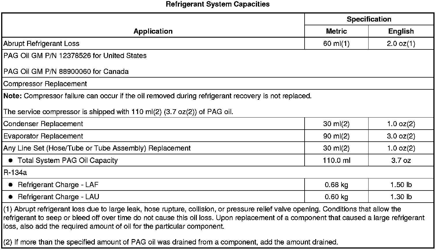 Capacity Specifications