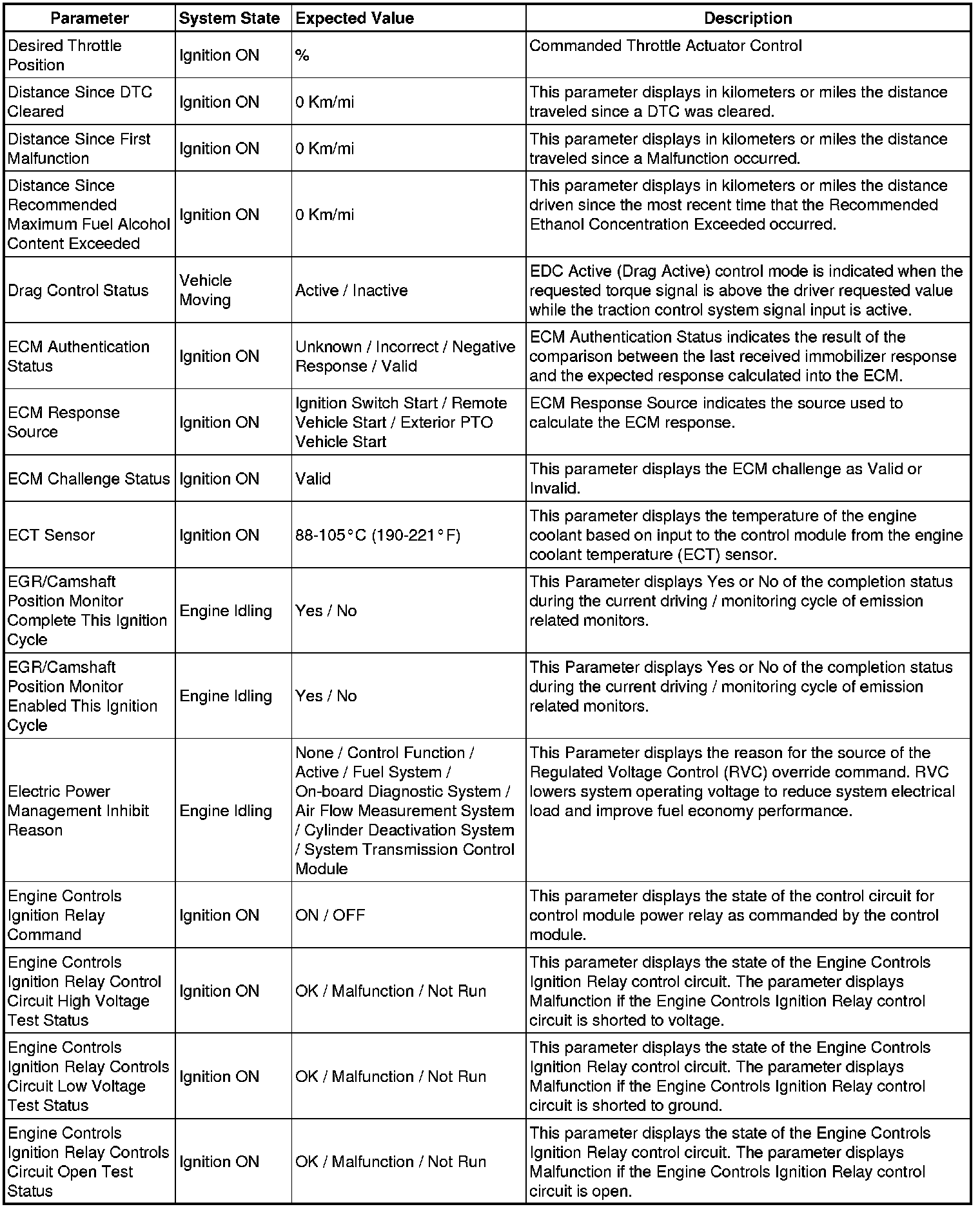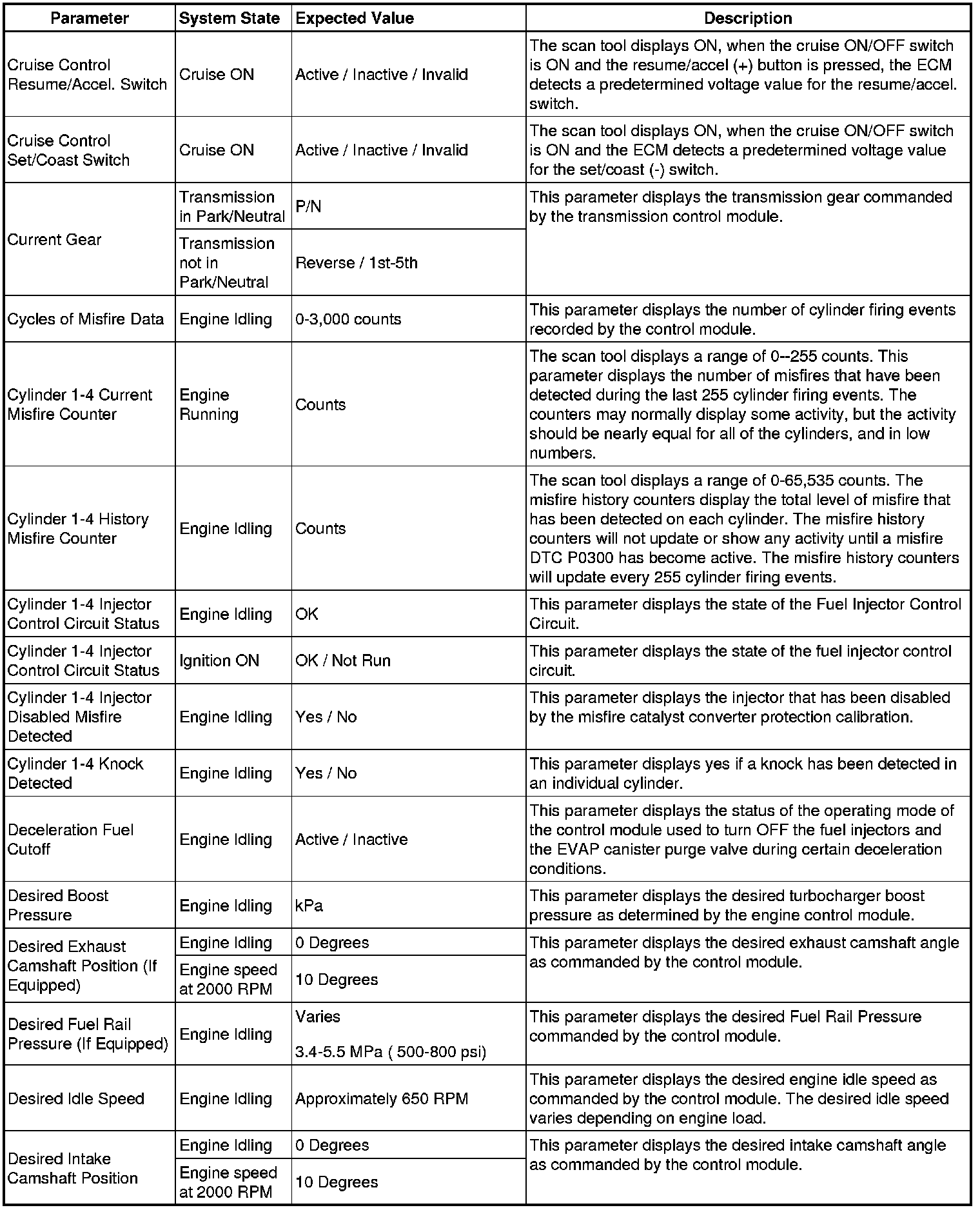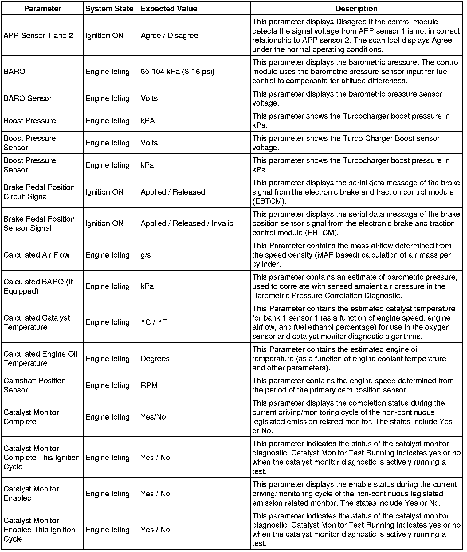 The Engine Control Module Scan Tool Data List contains all engine-related parameters that are available on the scan tool. The list is arranged in alphabetical order. A given parameter may appear in any one of the data lists, and in some cases may appear more than once, or in more than one data list in order to group certain related parameters together.