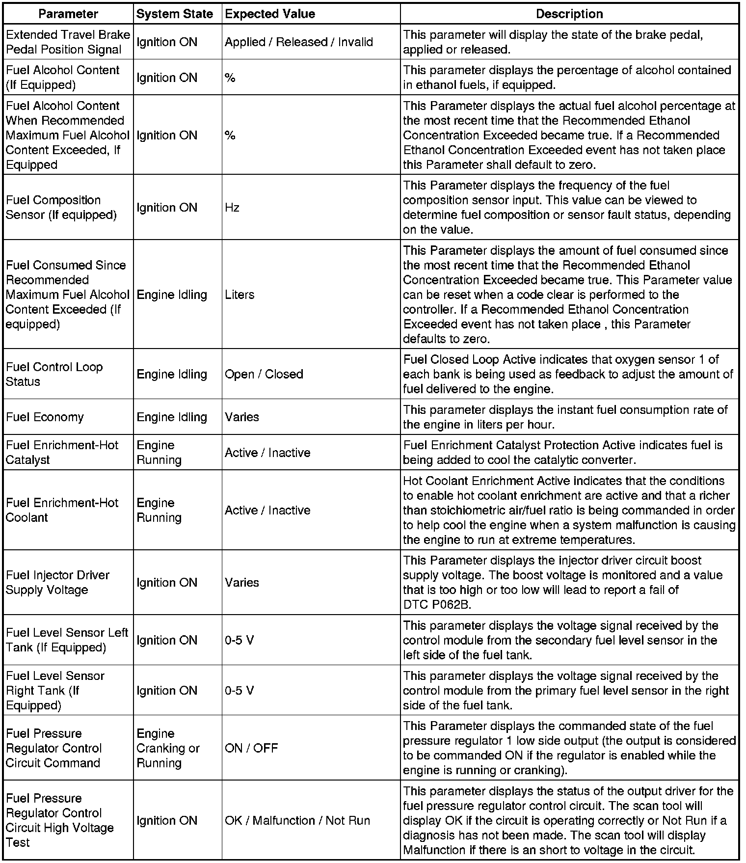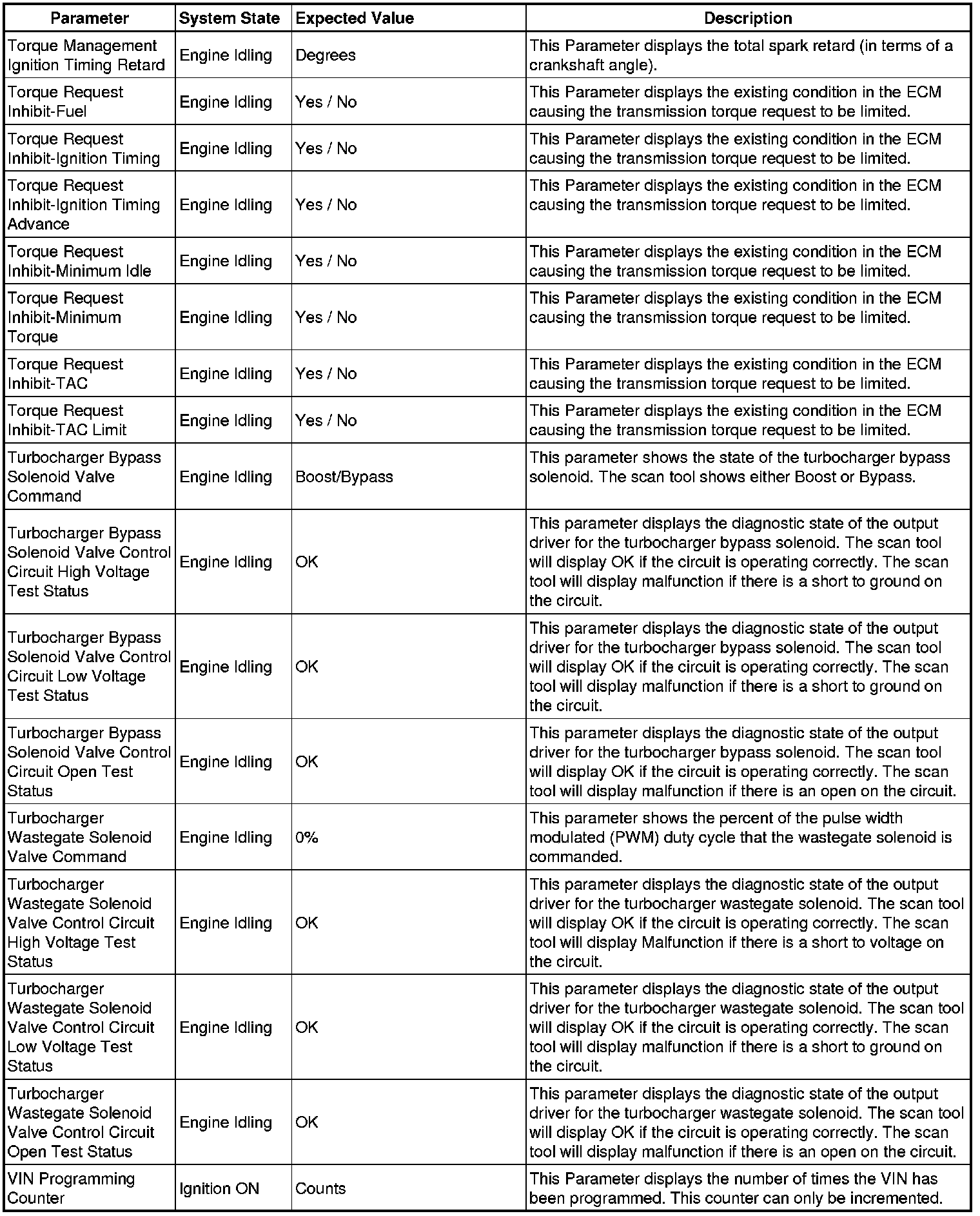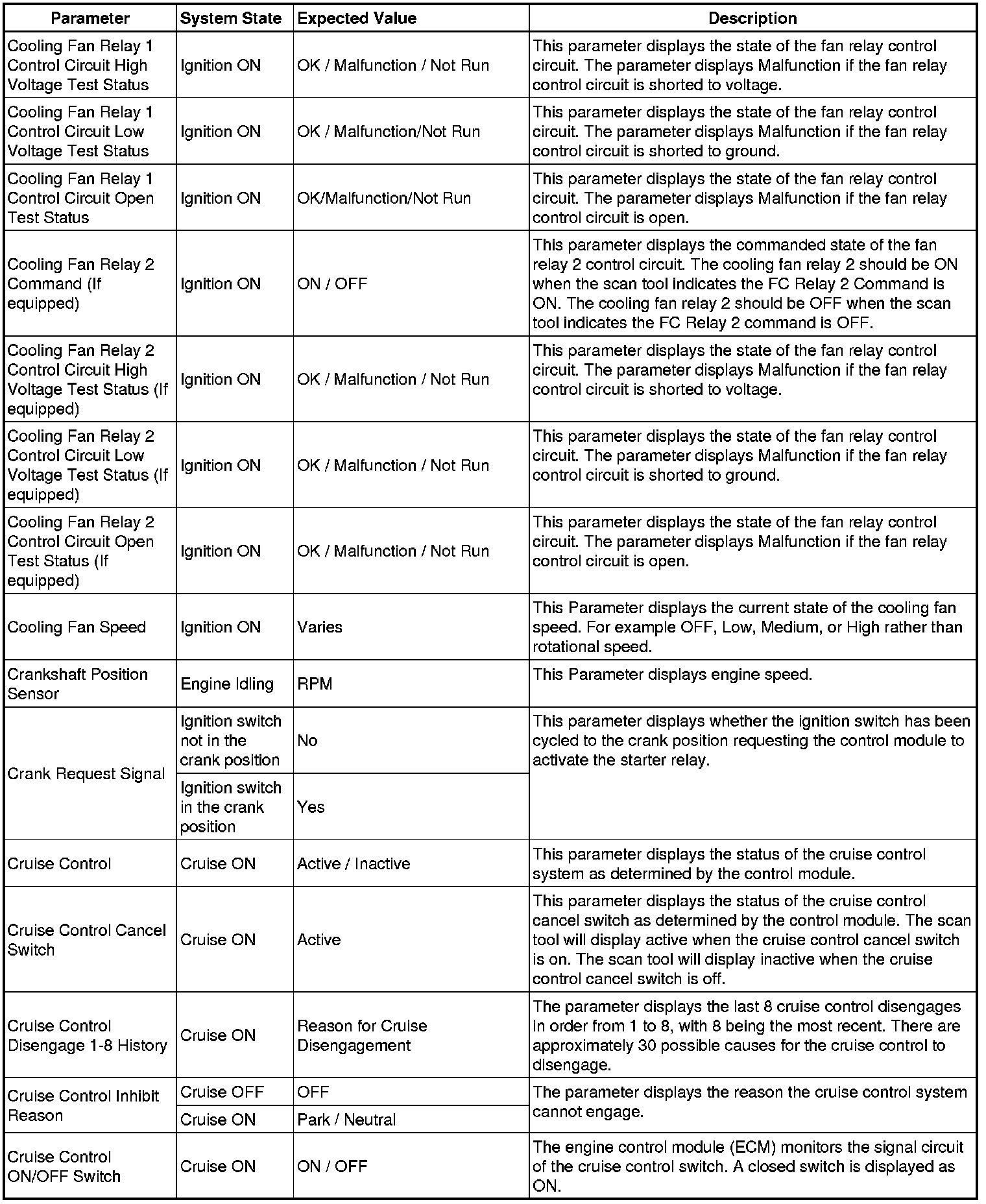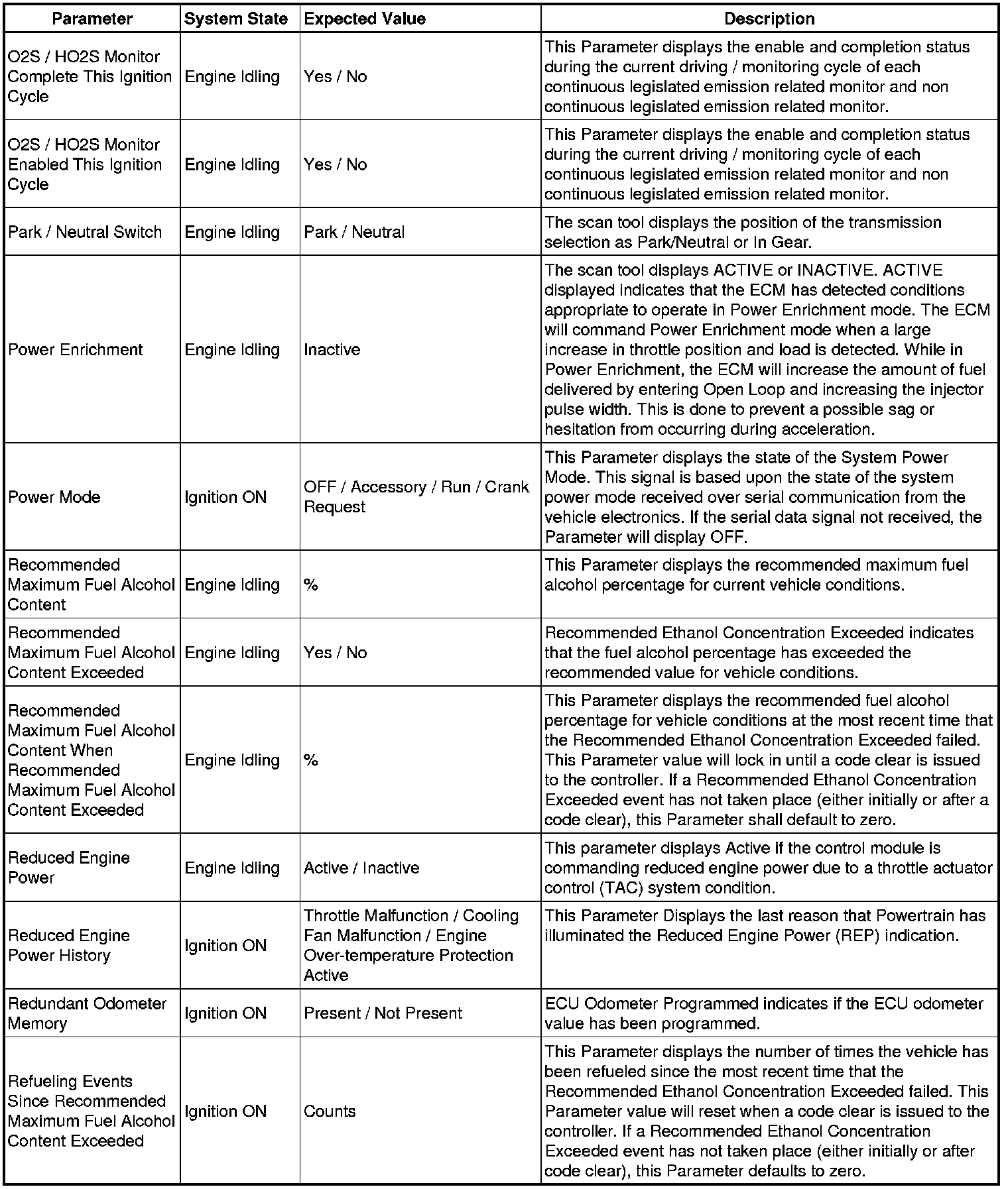 The Engine Control Module Scan Tool Data List contains all engine-related parameters that are available on the scan tool. The list is arranged in alphabetical order. A given parameter may appear in any one of the data lists, and in some cases may appear more than once, or in more than one data list in order to group certain related parameters together.