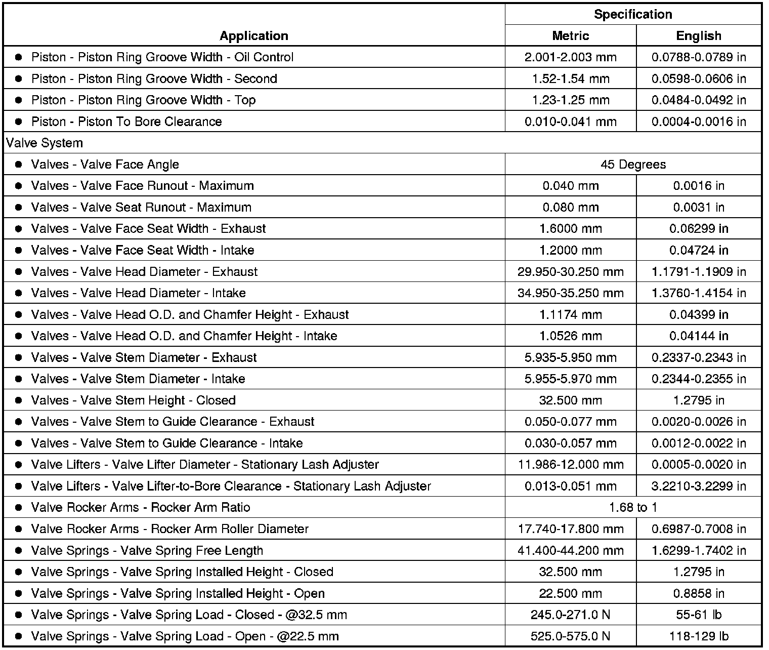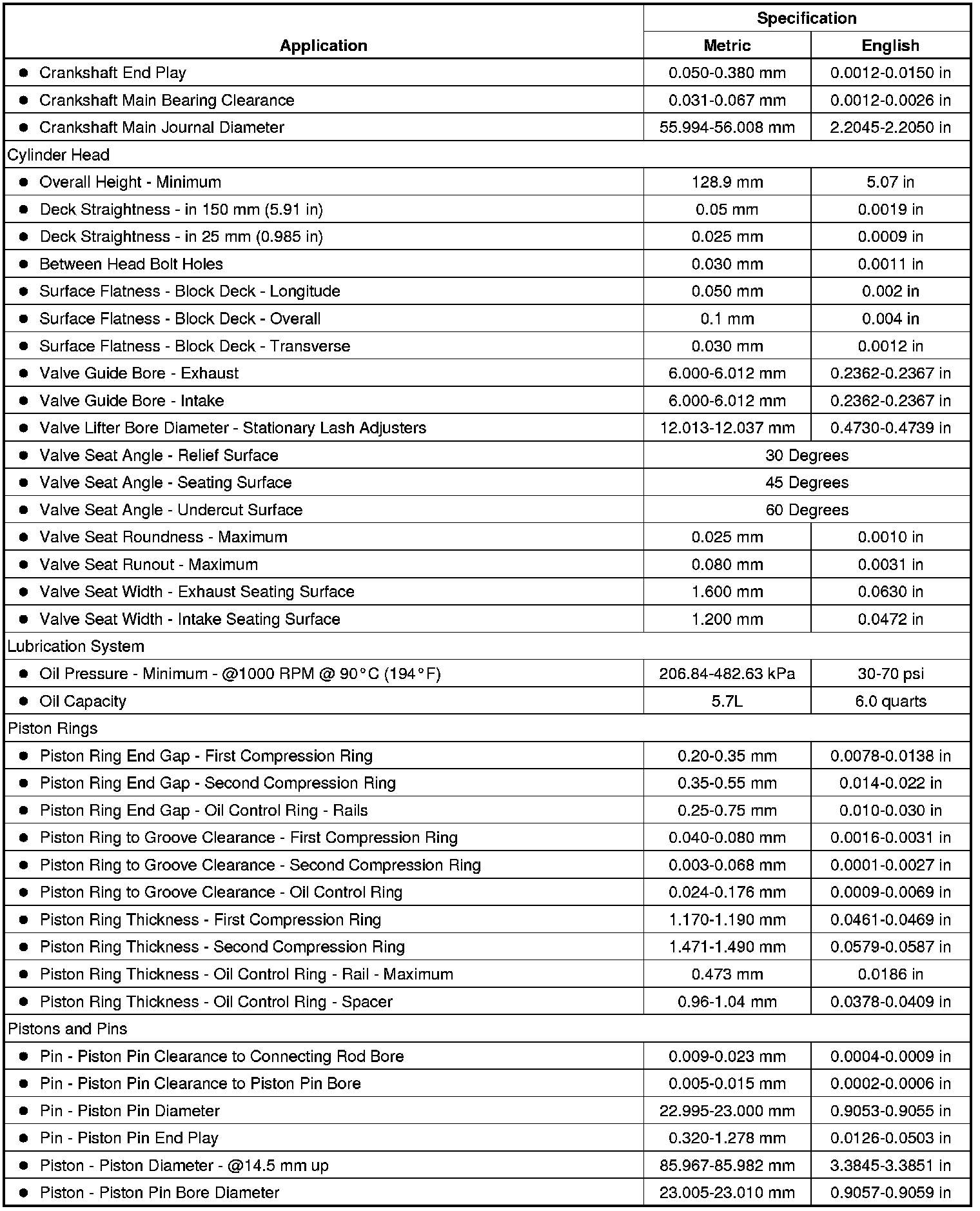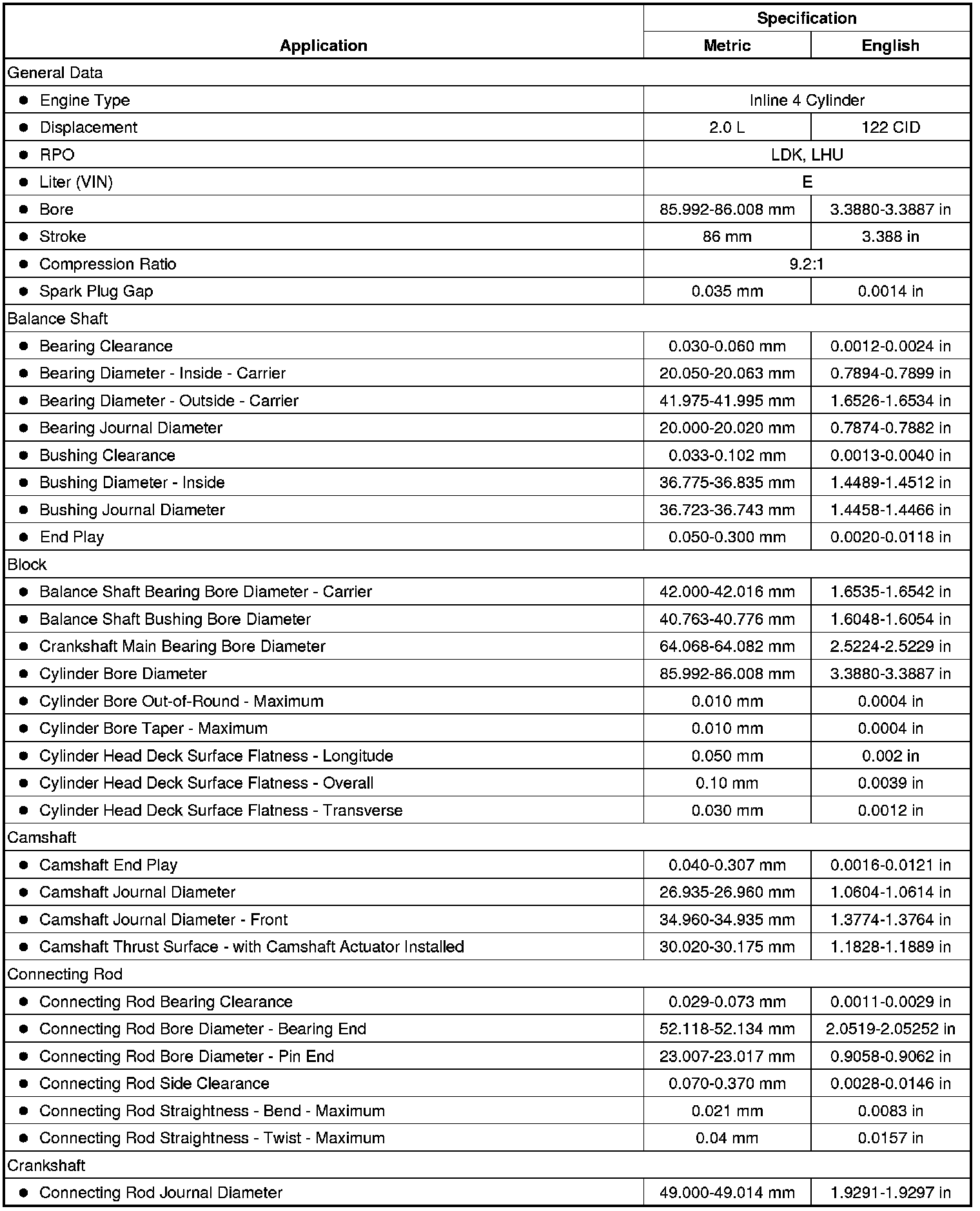 Engine Mechanical Specifications (LDK, LHU) (2.0L)