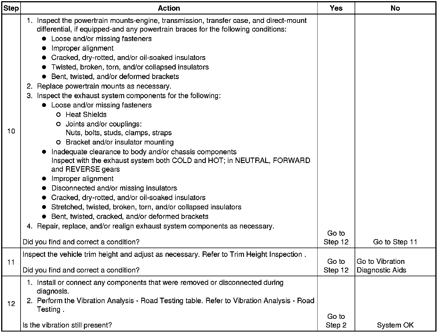 10. Damaged or worn powertrain mounts and/or exhaust mounts may cause a noise or vibration that may be transferred into the passenger compartment.