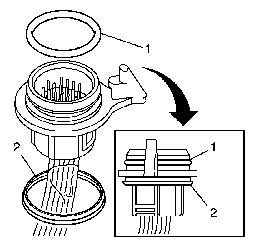 Fit a new seal (2) in the gearcase and an O-ring (1) on the connection.
