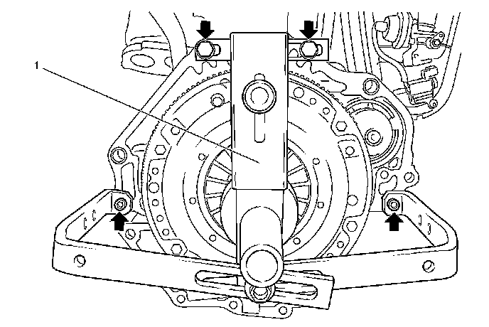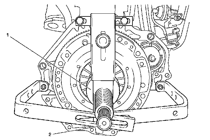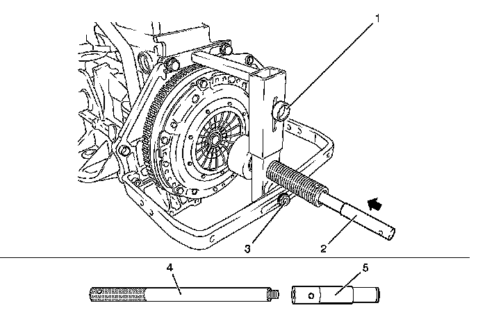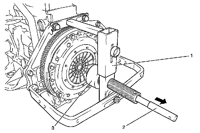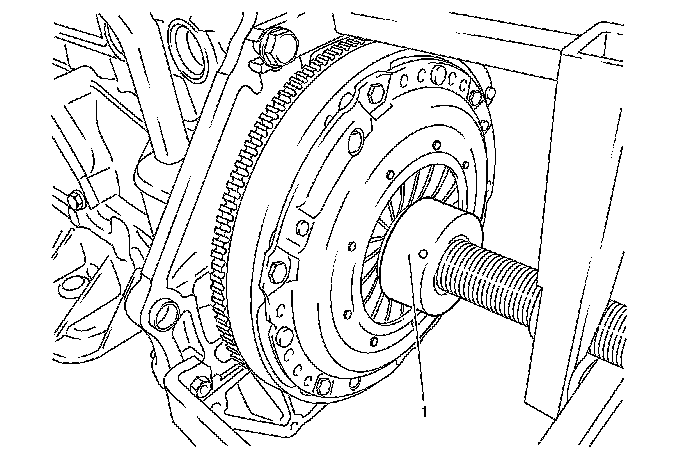 2. Insert centering drift with DT-6263-30 - remover and installer (2) through DT-6263 - remover and installer into clutch plate and crankshaft (center).