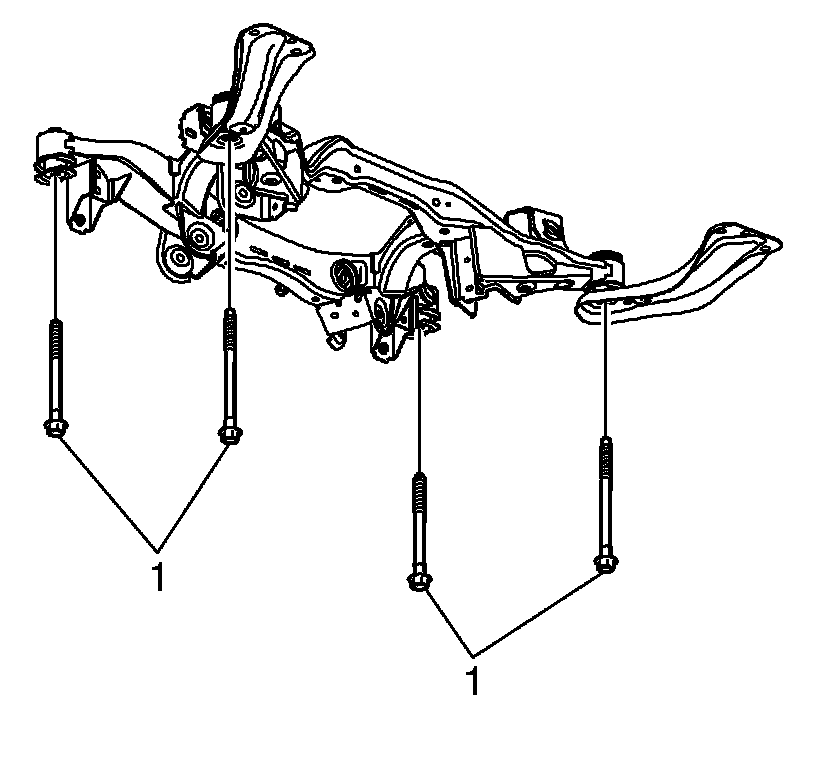 6. Install 4 NEW rear support to body bolts (1) and tighten to 90 Nm (66 lb ft) + 180 degrees + 15 degrees.