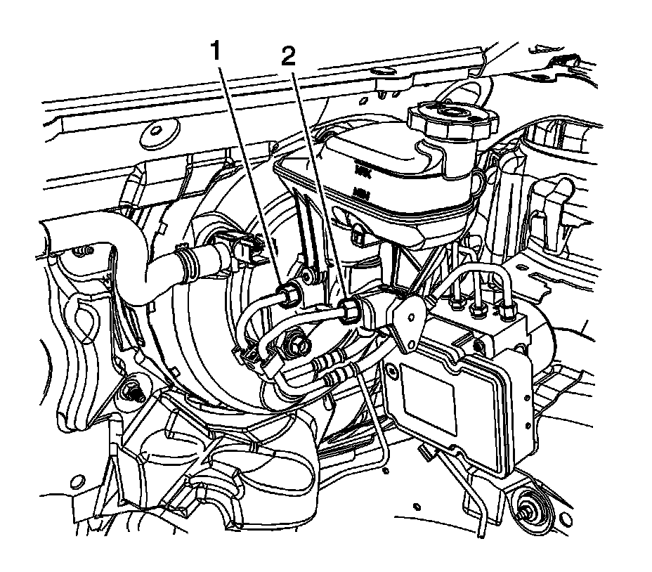 9. Disconnect the master cylinder secondary brake pipe fitting (2).