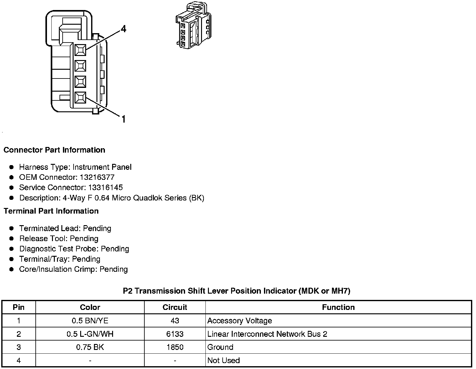P2 Transmission Shift Lever Position Indicator (MDK or MH7)