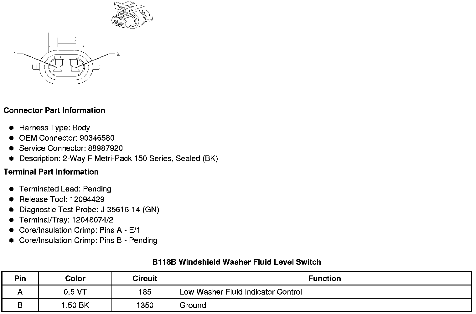 B118B Windshield Washer Fluid Level Switch