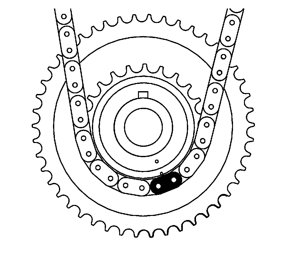 * There are 3 colored links on the timing chain. Two links are of matching color, and 1 link is of a unique color. Use the following procedure to line up the links with the actuators. Orient the chain so that the colored links are visible.
