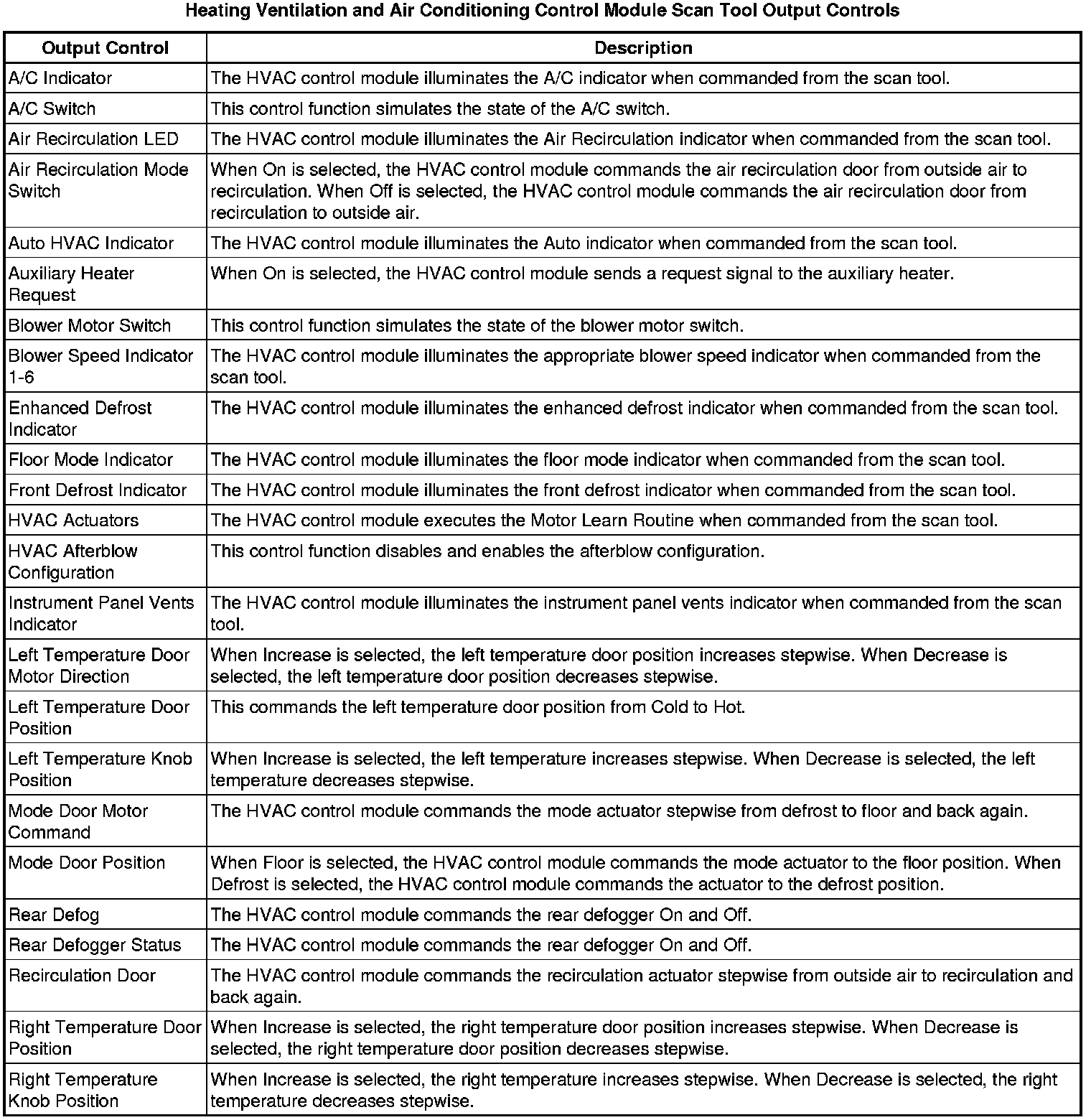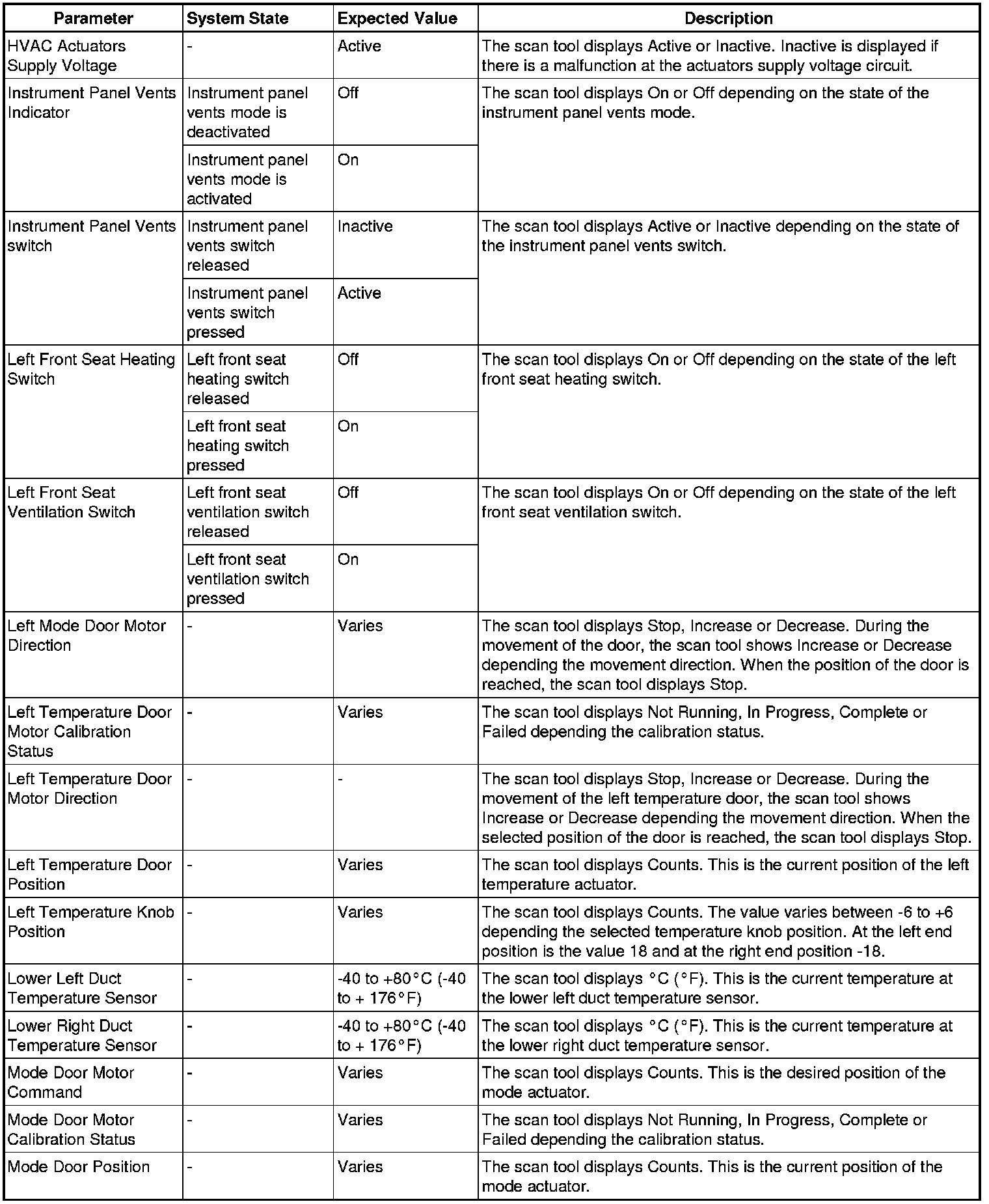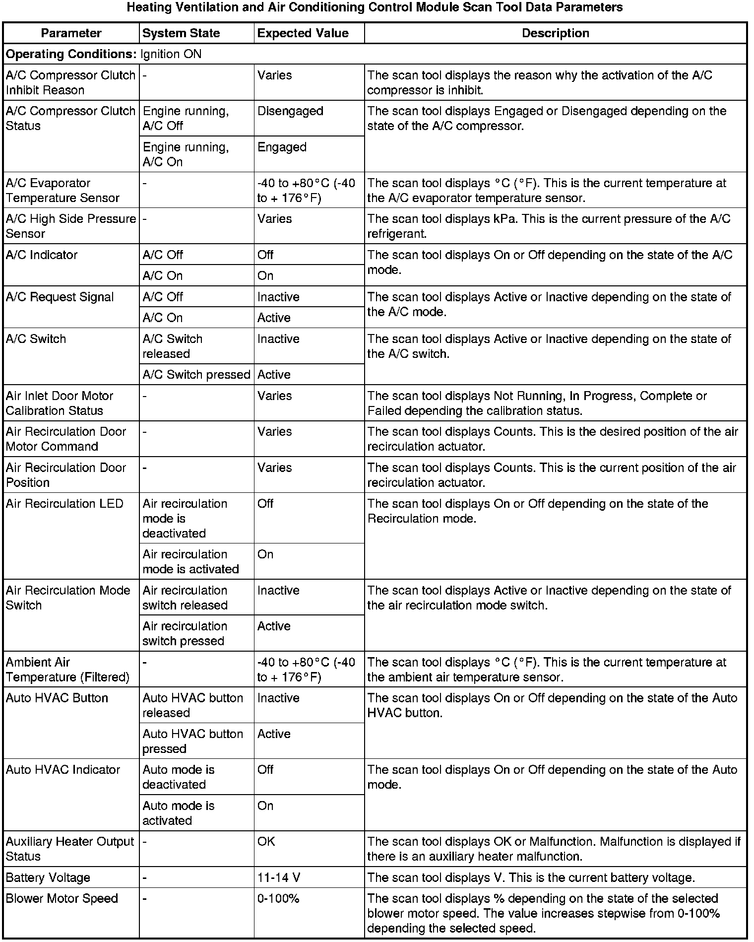 Heating, Ventilation and Air Conditioning Control Module Scan Tool Information