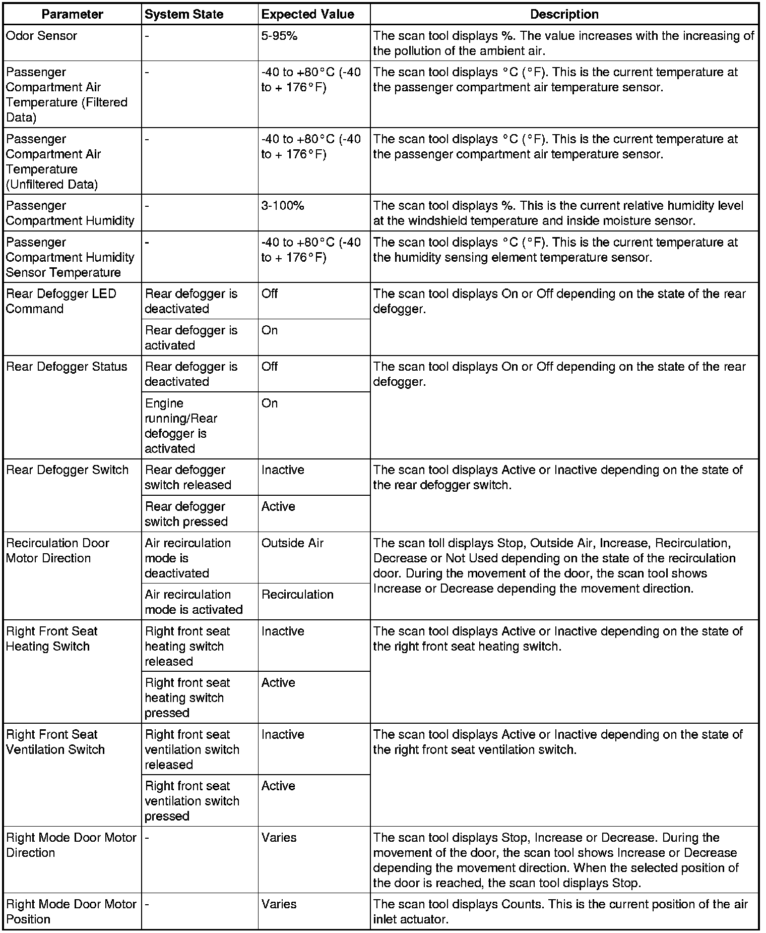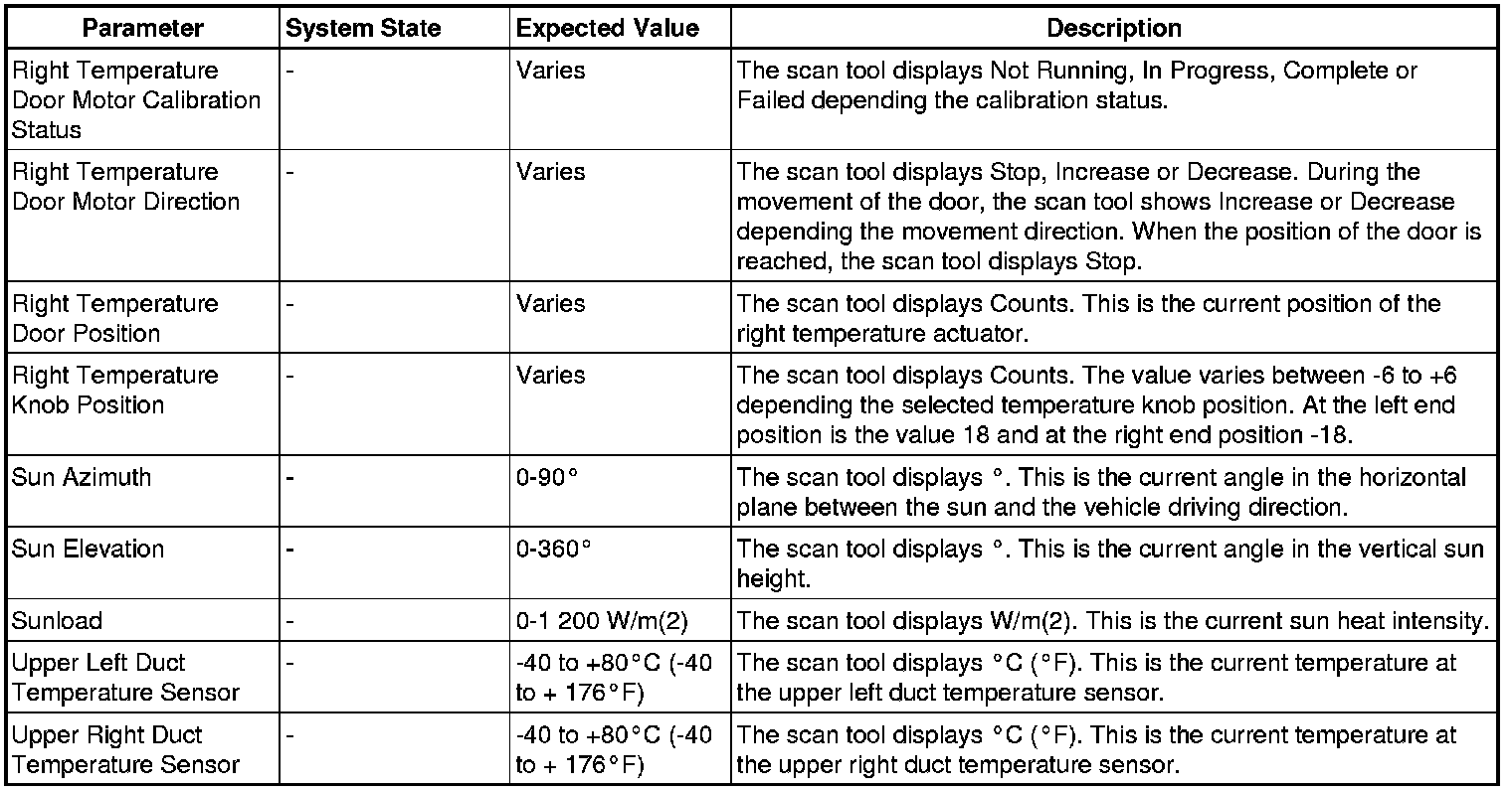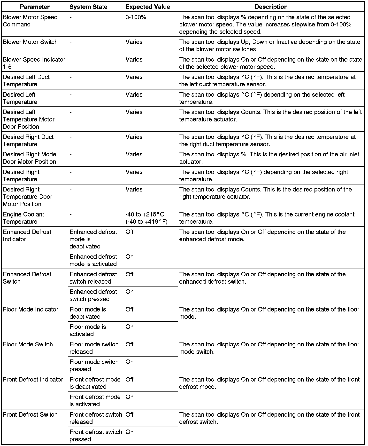 Heating, Ventilation and Air Conditioning Control Module Scan Tool Information