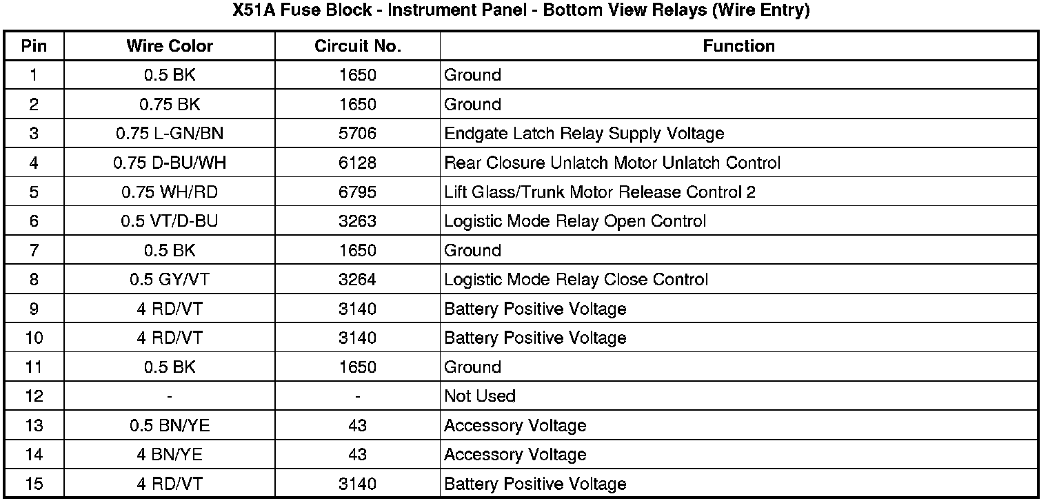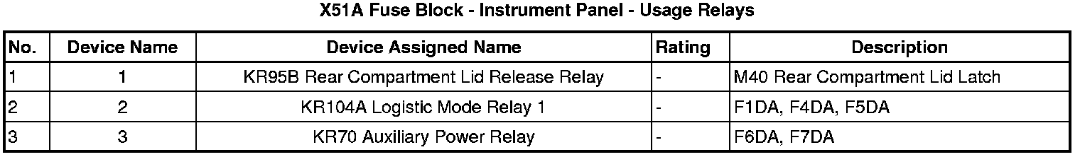 X51A Fuse Block - Instrument Panel - Top View Relays