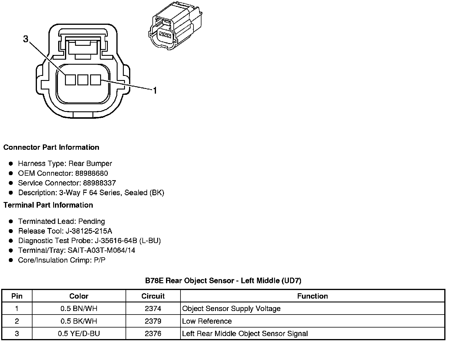 B78E Rear Object Sensor - Left Middle (UD7)
