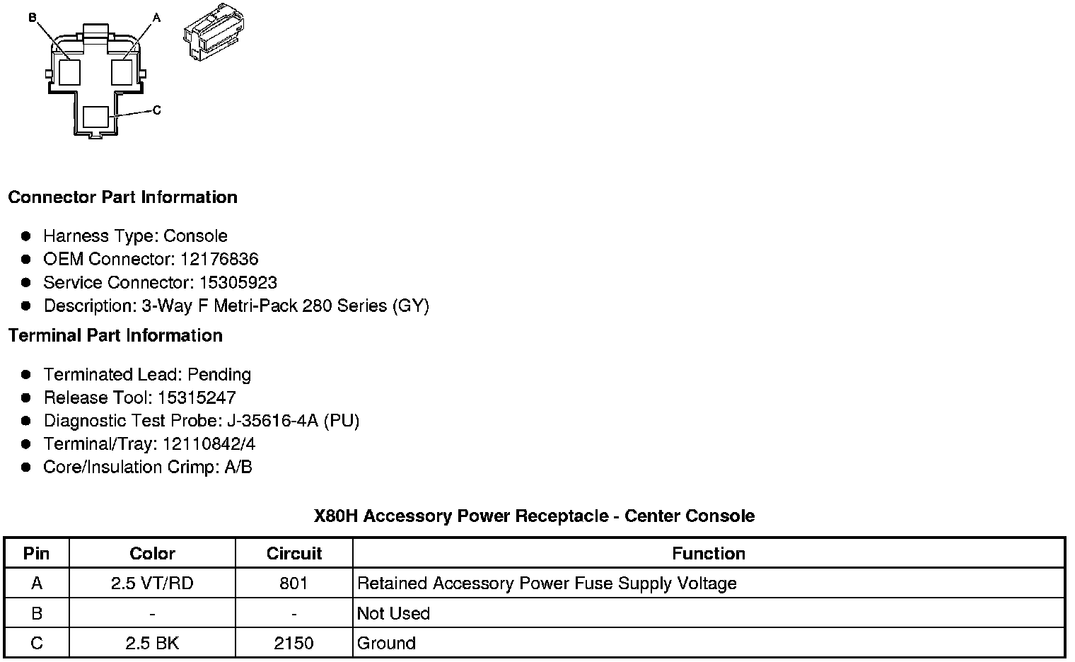 X80H Accessory Power Receptacle - Center Console