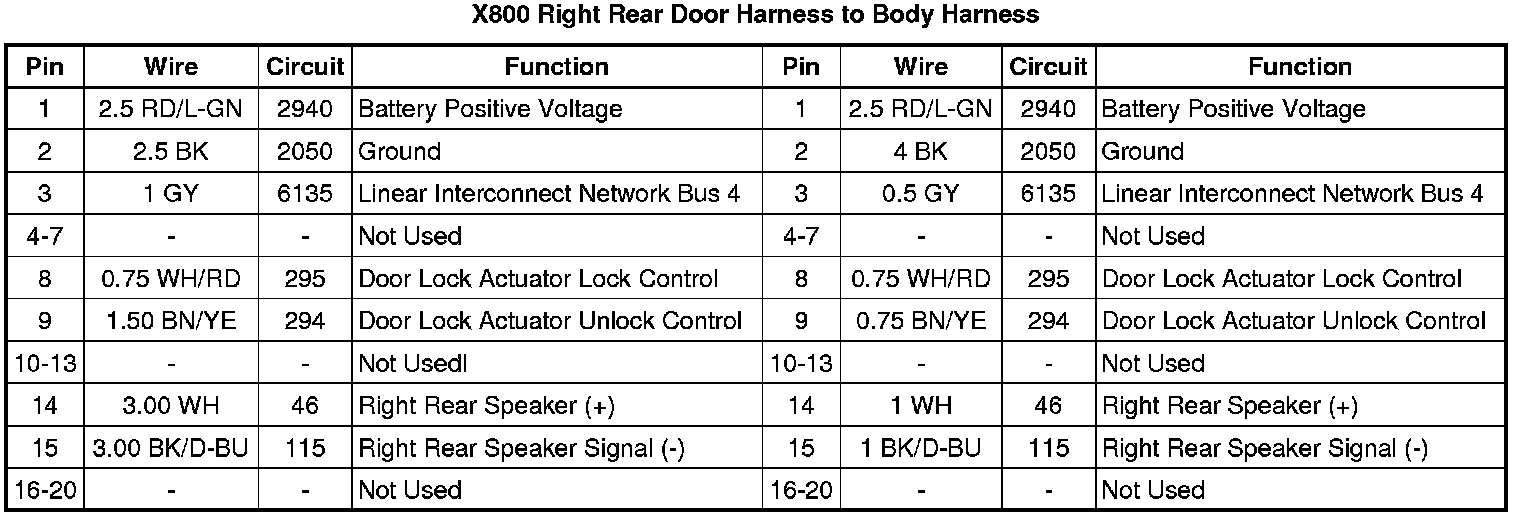 X800 Right Rear Door Harness to Body Harness