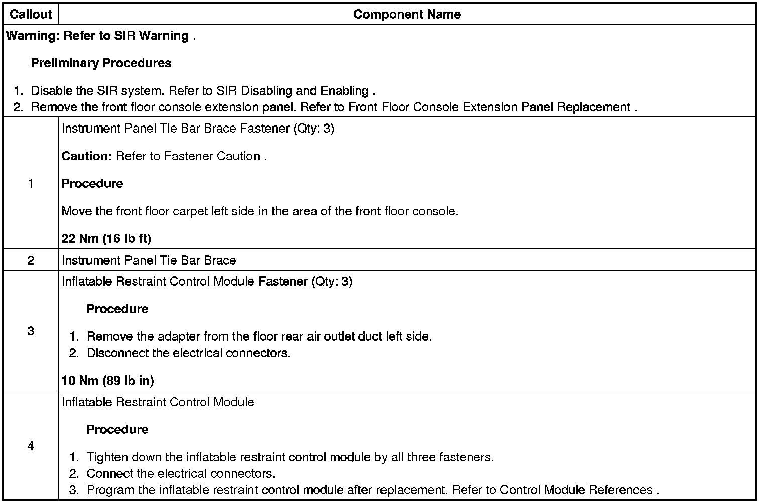 Inflatable Restraint Control Module Replacement