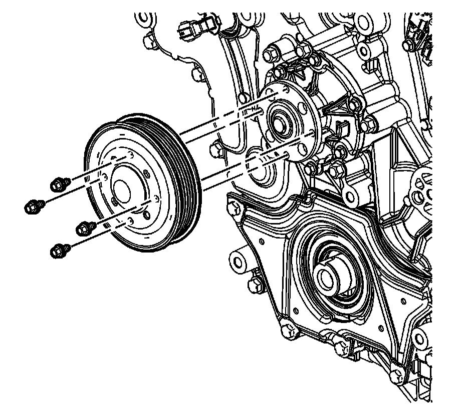 9. Loosely install the water pump pulley bolts.
