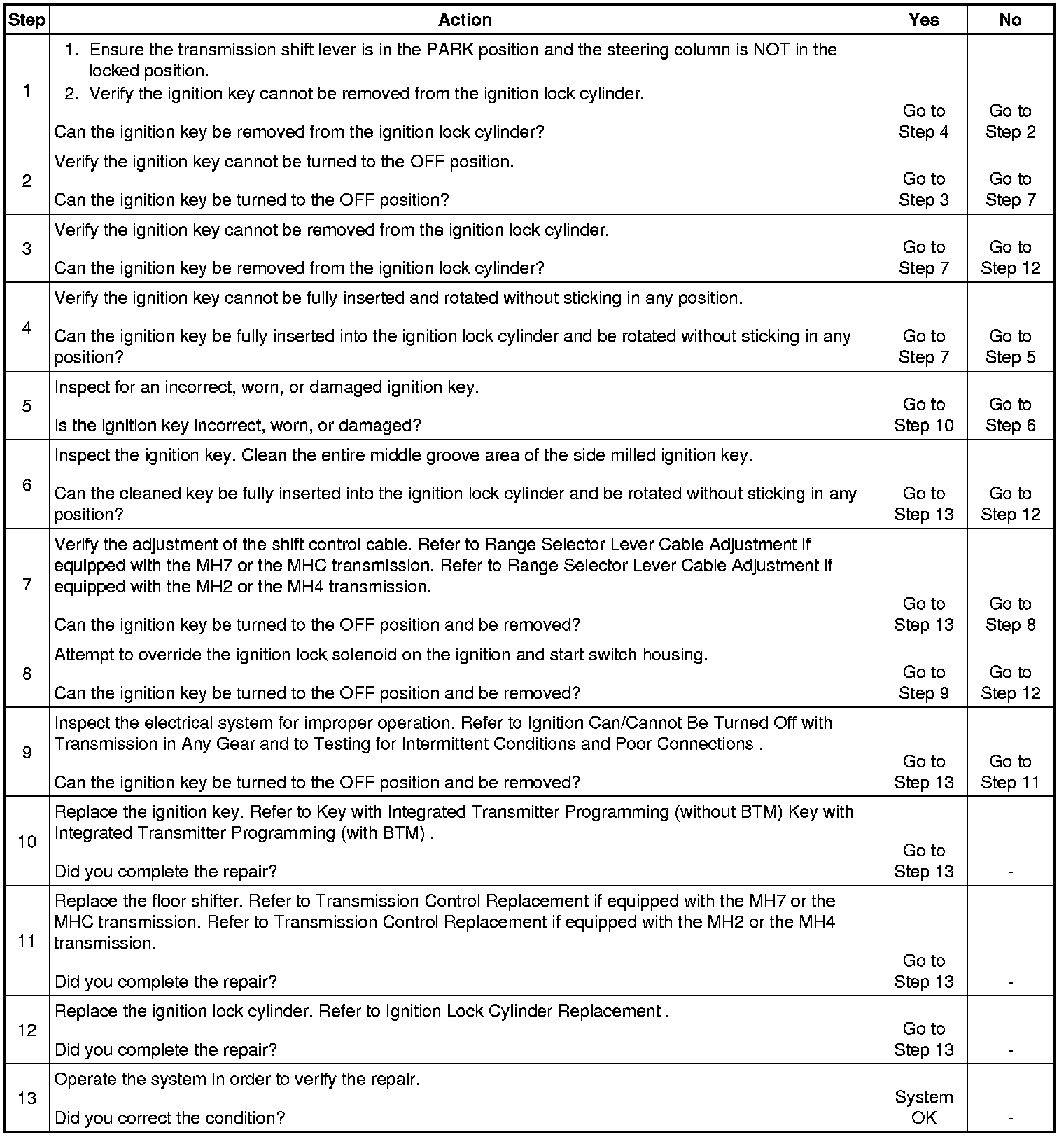 Cannot Be Inserted, Rotated, or Removed from the Ignition Lock Cylinder