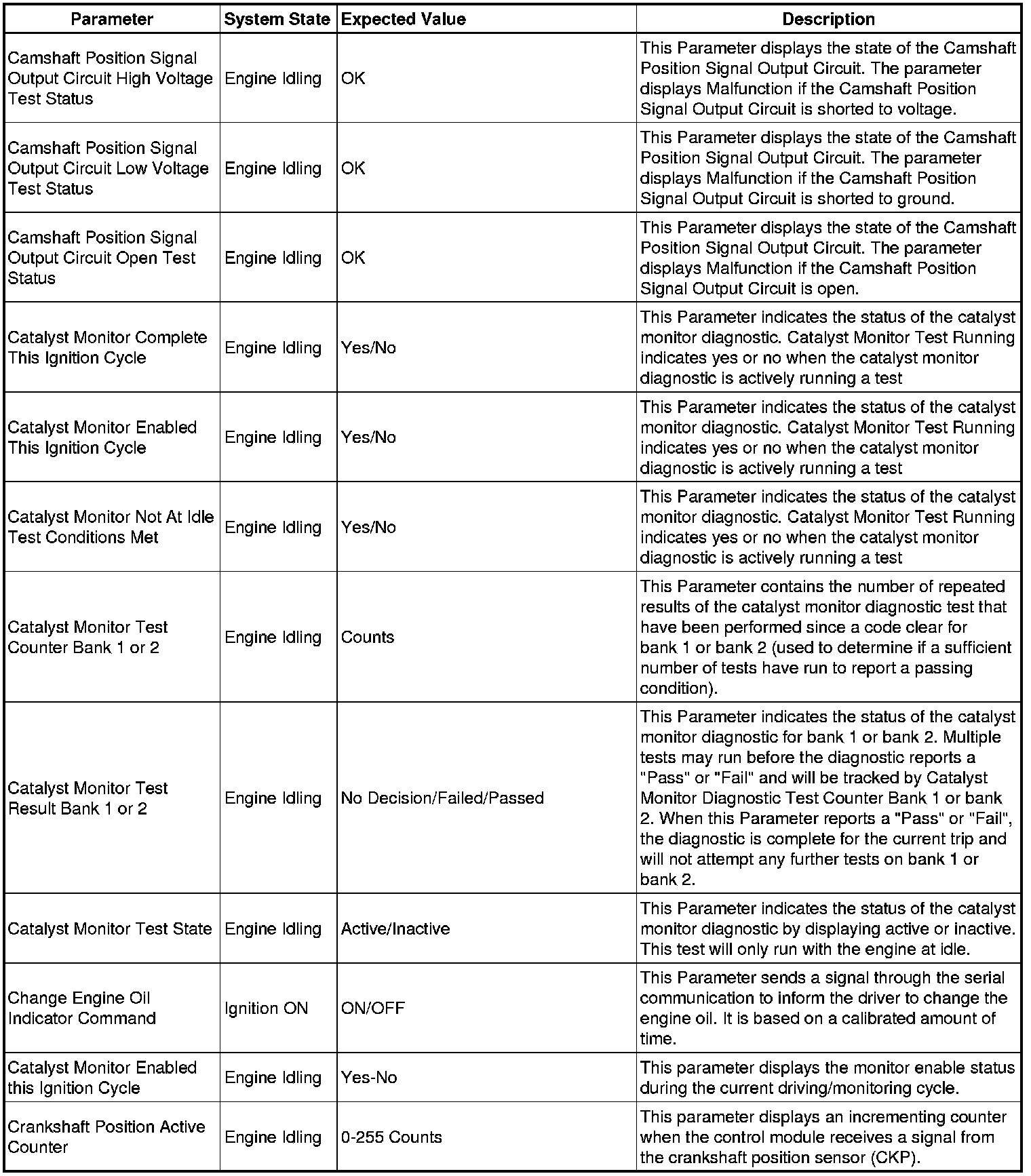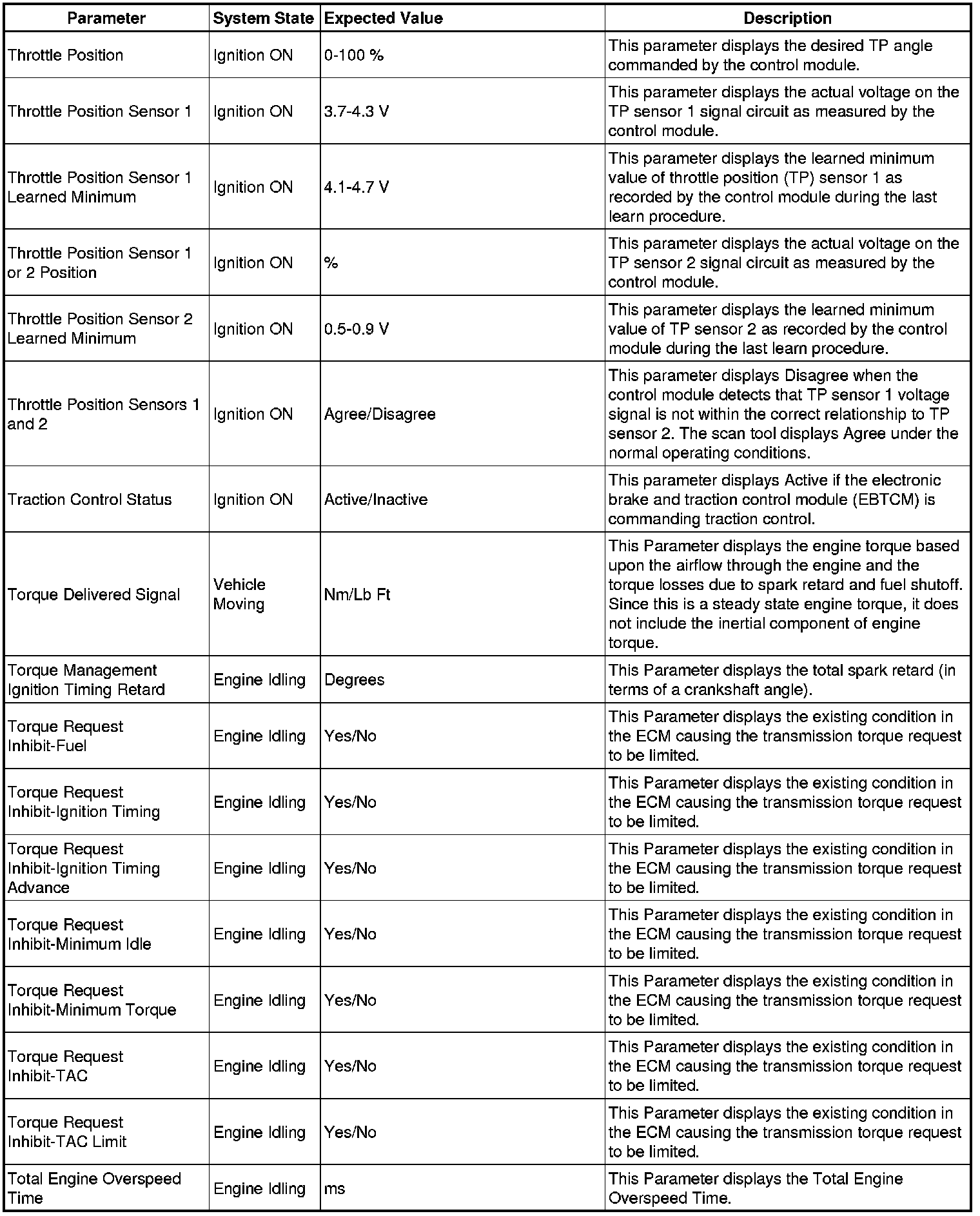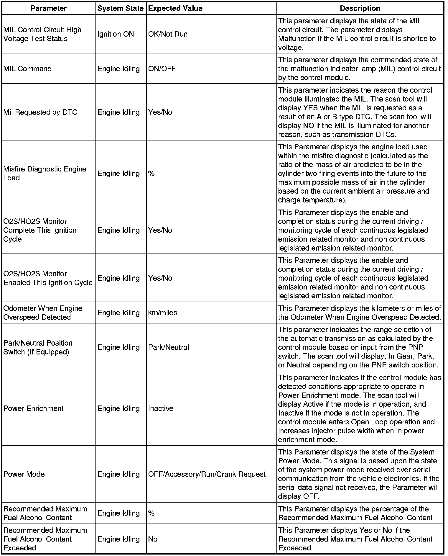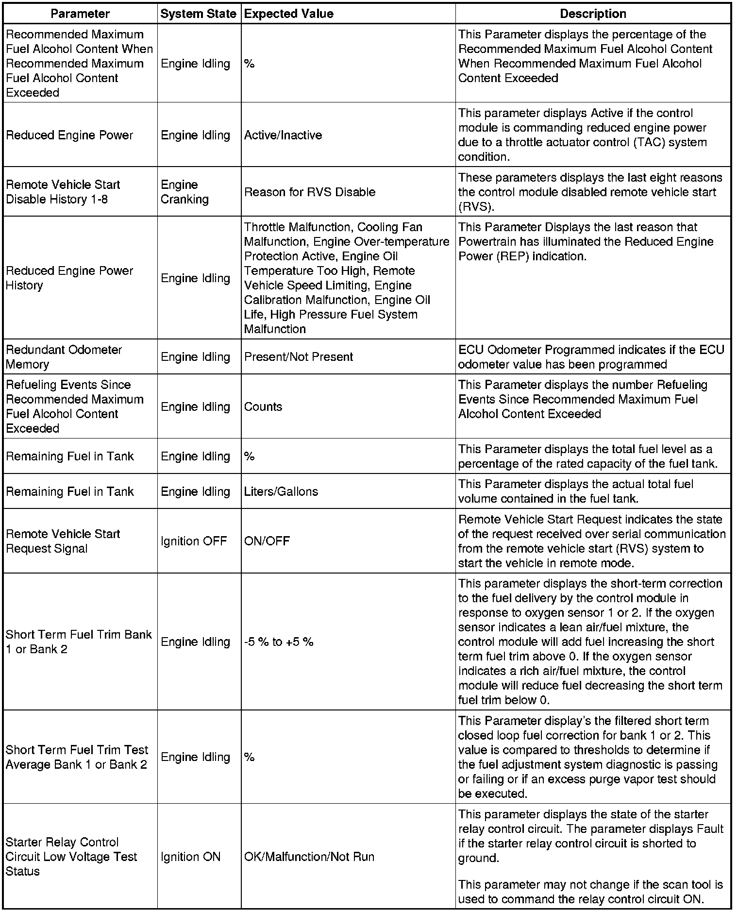 Only the parameters listed below are referenced in this service manual for use in diagnosis.